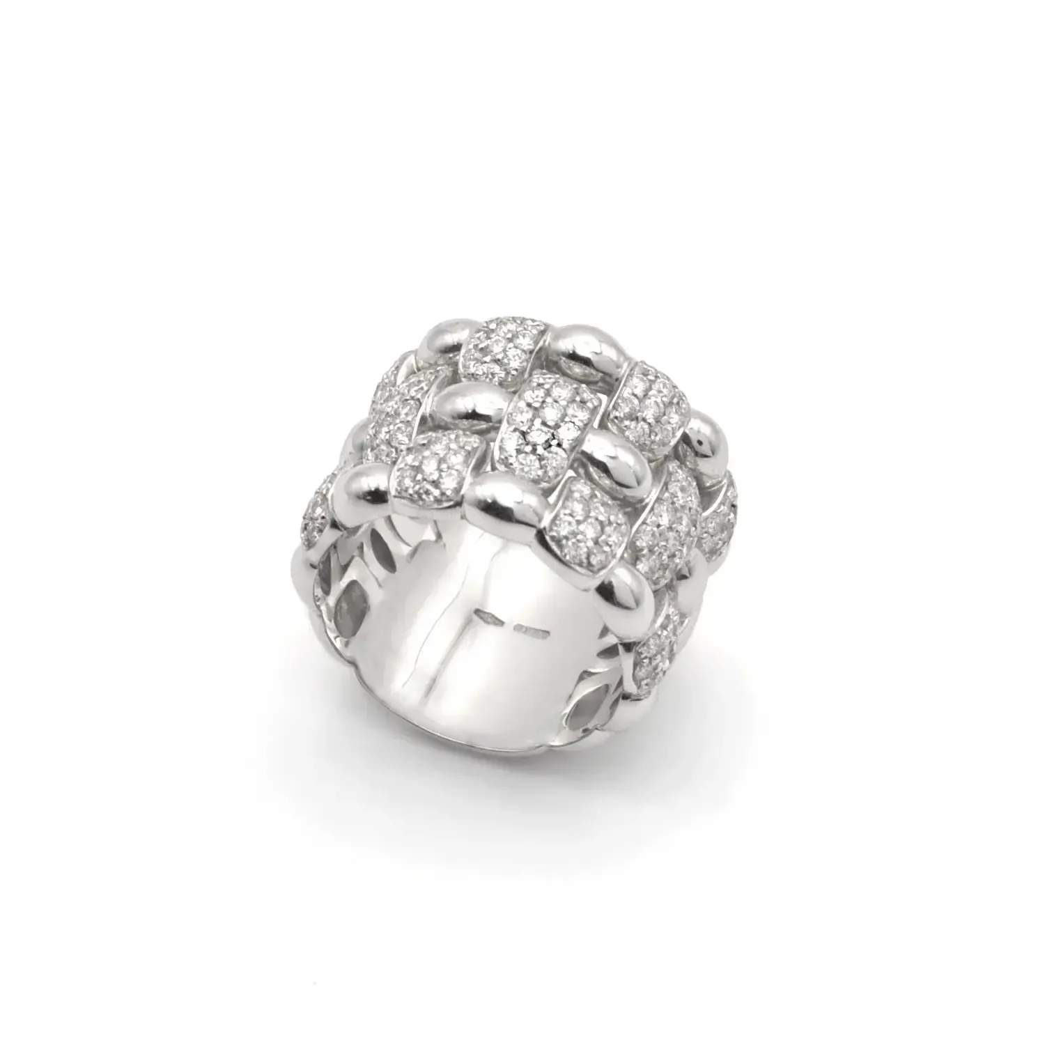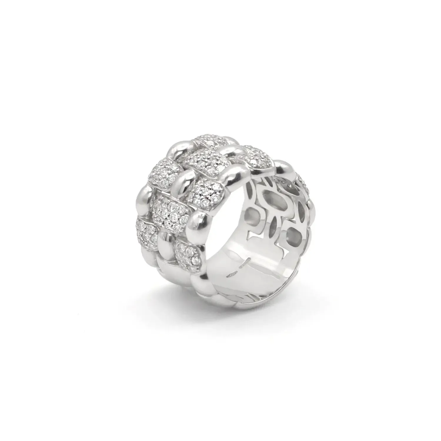Geflochtener Bandring aus Weißgold mit Diamanten
