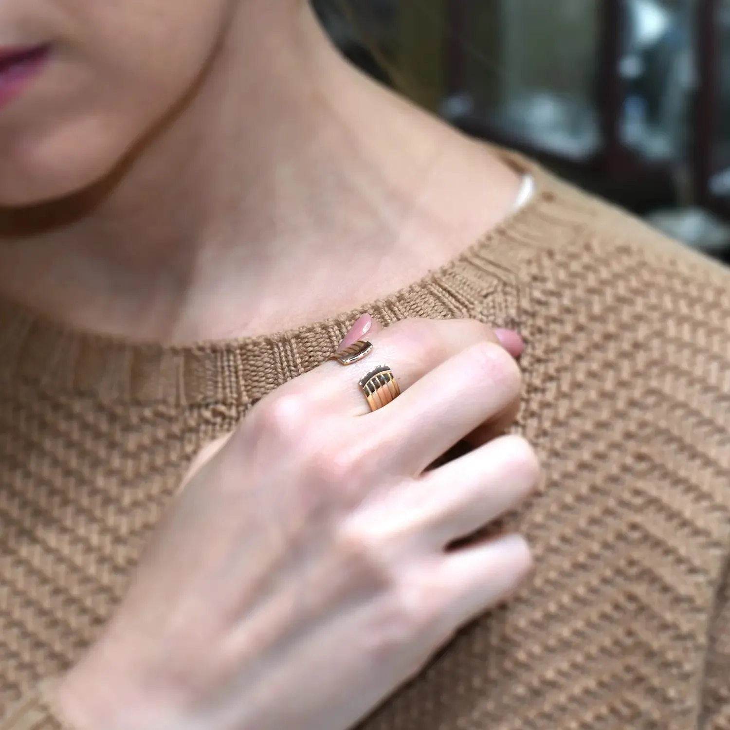 Ringe Gestreifter Bandring aus 18 Karat Gelbgold. an0019 475,00 € 18-karätiger Goldring mit Fantasiedesign In den Warenkorb