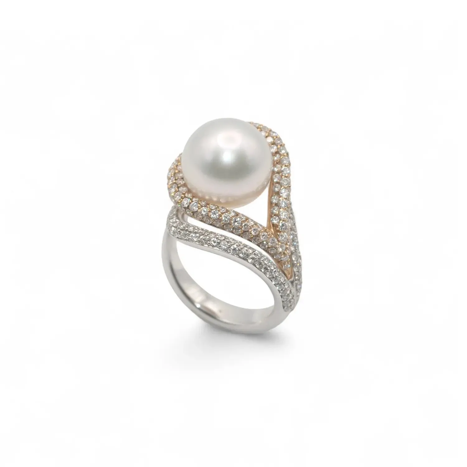 Ring aus Weiß- und Roségold mit Pavé-Diamanten und zentralaustralischer Perle