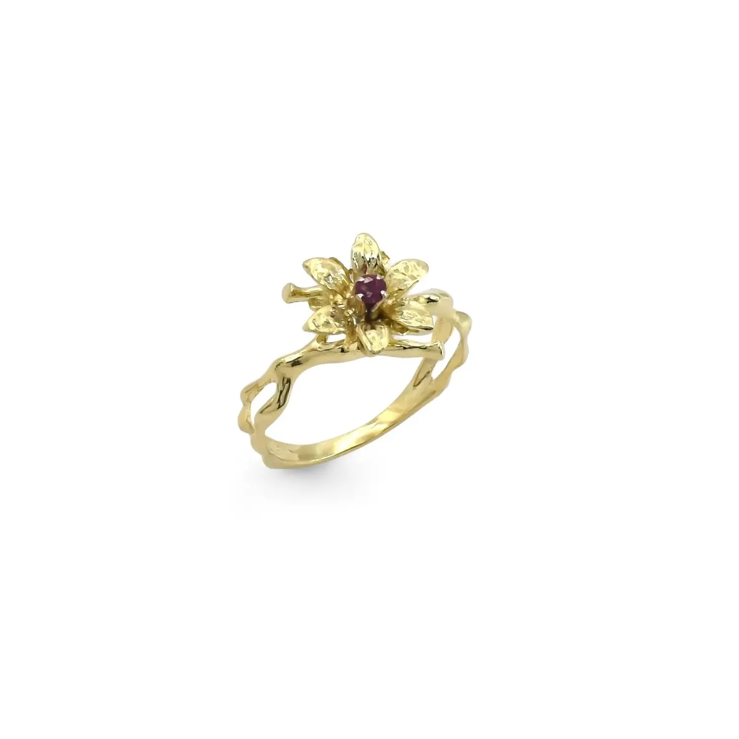 Ring „Nature’s Twist“ aus 18-karätigem Gelbgold mit Rubinblume