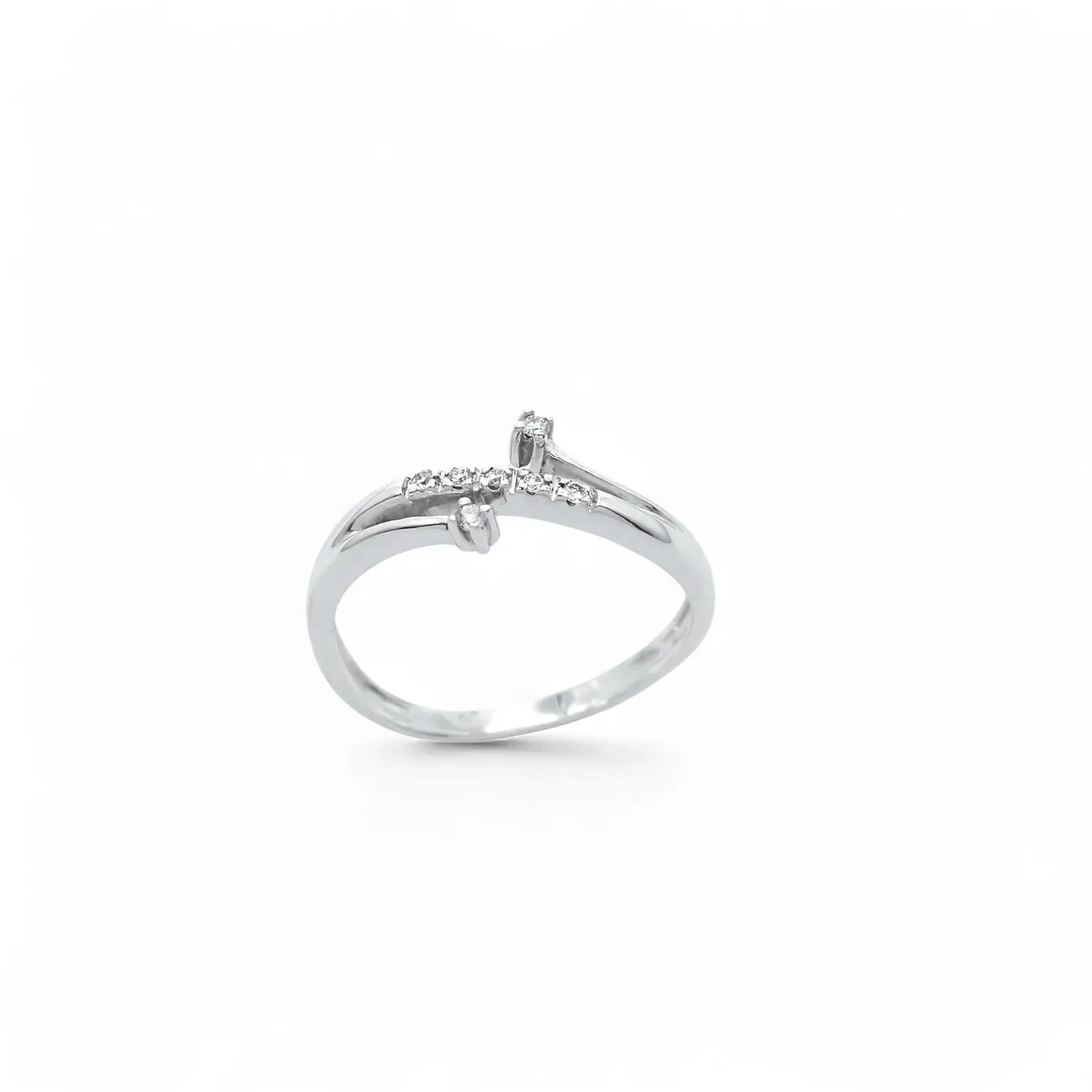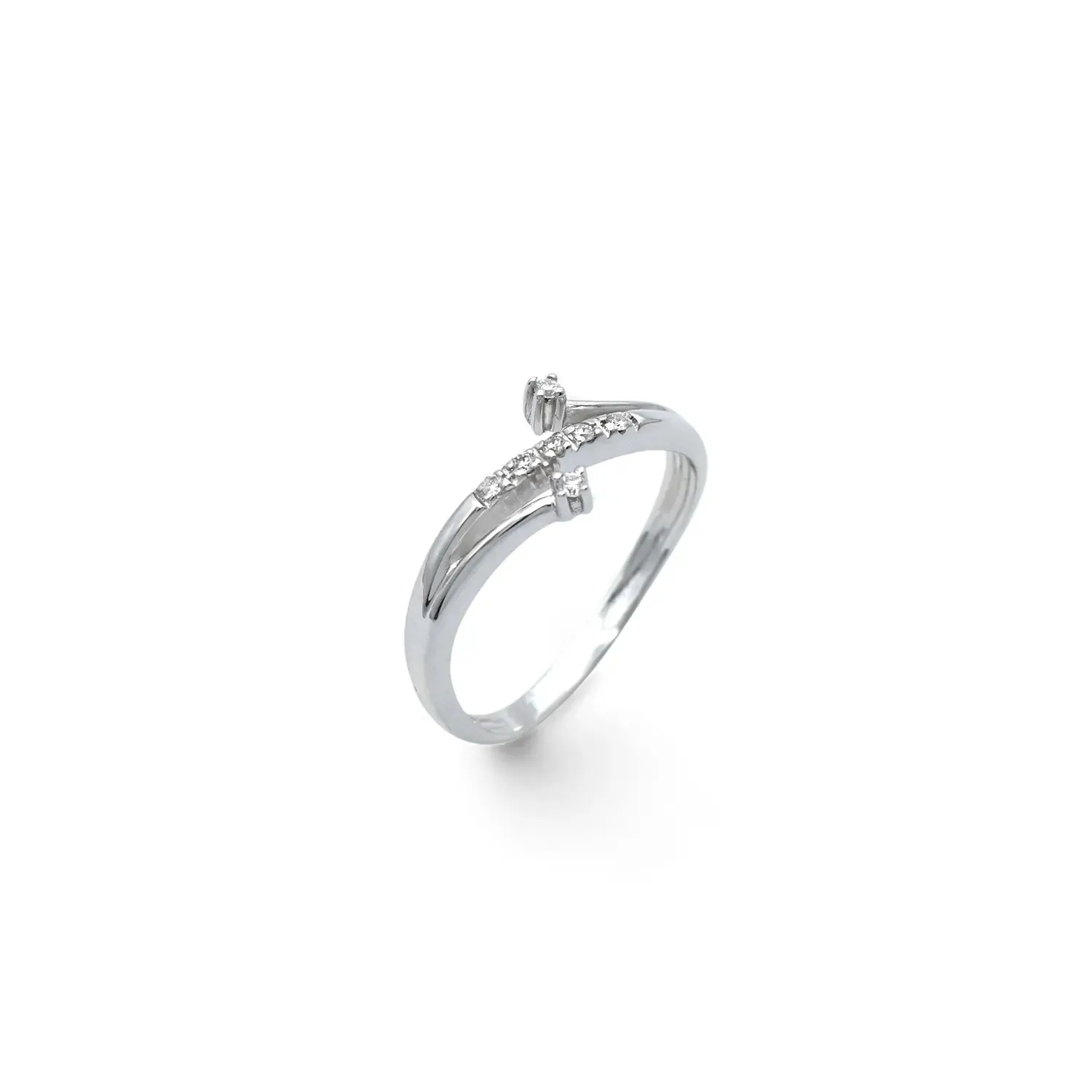 Dieser Ring aus 18-karätigem Weißgold besticht durch sein modernes Design und seine dynamische Silhouette. Die Fassung, geprägt von fließenden, asymmetrischen Linien, die sich sanft kreuzen, mündet in zwei markanten Elementen, die mit Brillanten von insgesamt 0,07 Karat besetzt sind. Die Diamanten sind so gefasst, dass ihre natürliche Brillanz optimal zur Geltung kommt und ein faszinierendes Lichtspiel entsteht, das den Bewegungen der Hand folgt. Mit einem angenehmen Gewicht von 2,20 Gramm bietet dieser Ring einen modernen und eleganten Tragekomfort. Ein Ausdruck innovativer italienischer Goldschmiedekunst, perfekt für alle, die ein einzigartiges Schmuckstück suchen, das die klassische Eleganz von Diamanten mit einer skulpturalen, avantgardistischen Form vereint.