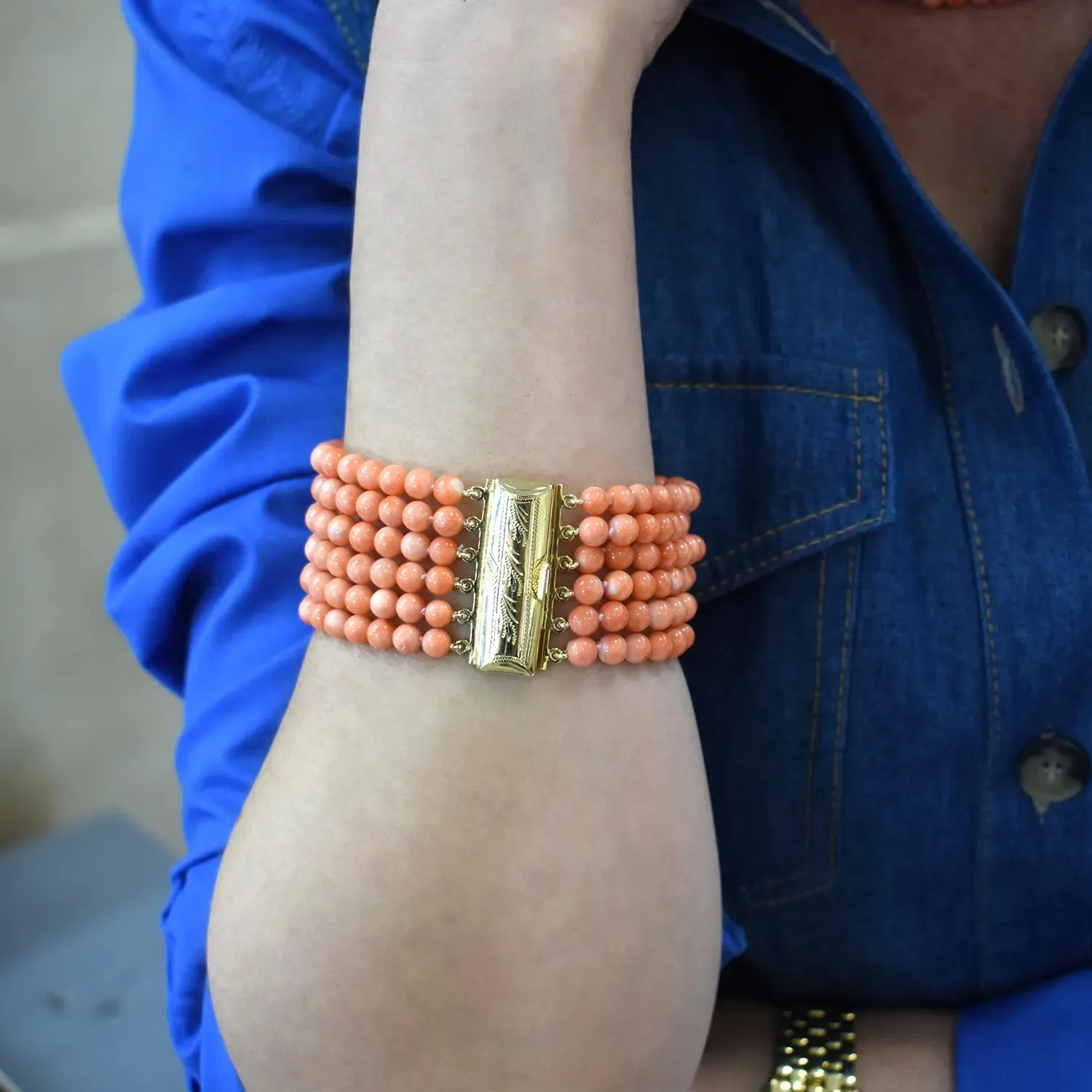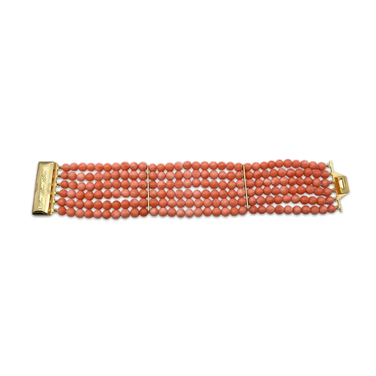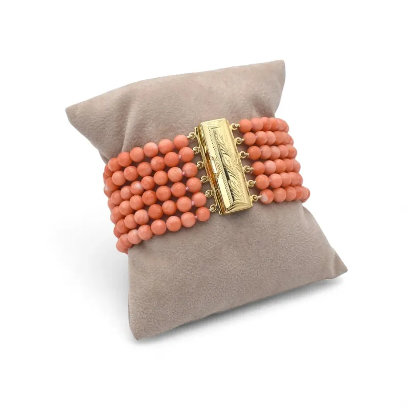 Armband aus natürlicher rosa Koralle und 18 Karat Gelbgold