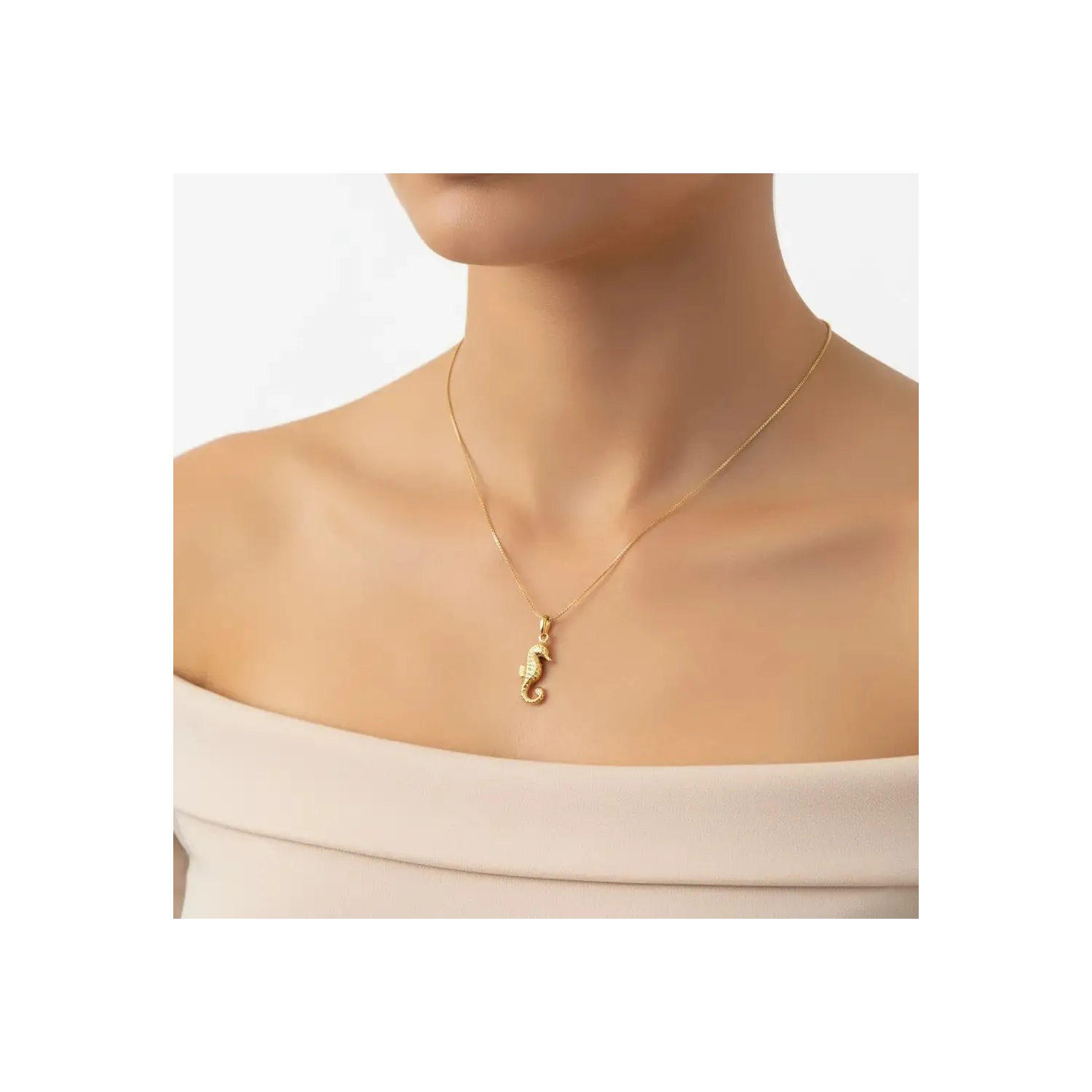 Dieser bezaubernde Anhänger aus 18-karätigem Gelbgold in Form eines Seepferdchens ist ein Schmuckstück voller Charakter und exzellenter Handwerkskunst. Die ca. 3 cm lange Figur ist vollständig aus poliertem Gelbgold gefertigt, wobei die Verarbeitung ihre Details und Dreidimensionalität besonders hervorhebt. Ihr massives, poliertes Aussehen macht sie zu einem optisch ansprechenden Accessoire. Mit einem Gewicht von 1,9 g ist sie ein bedeutungsvoller Anhänger, der sich ideal mit einer mittellangen Gliederkette kombinieren lässt und perfekt für Meeresliebhaber oder als besonderes Geschenk geeignet ist.