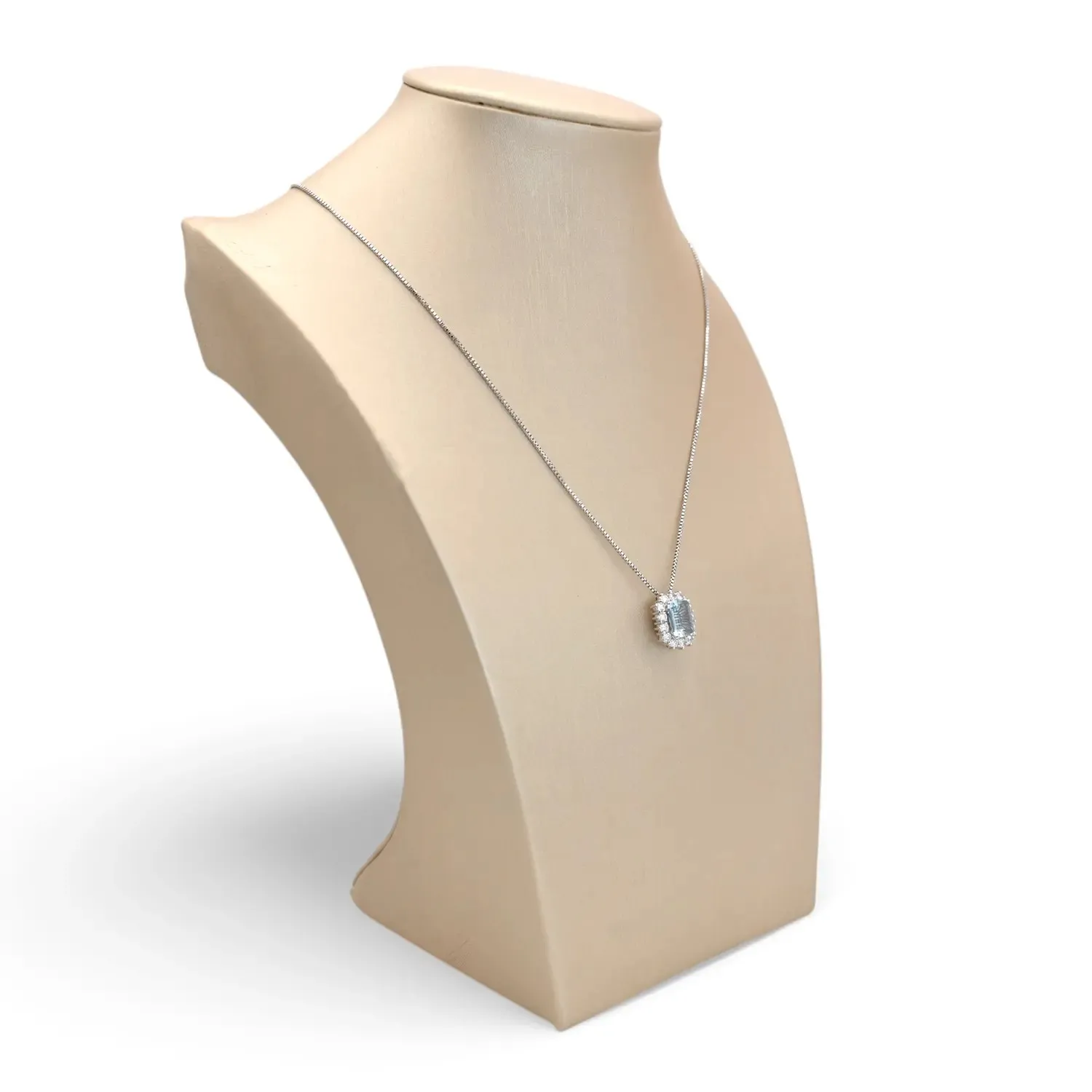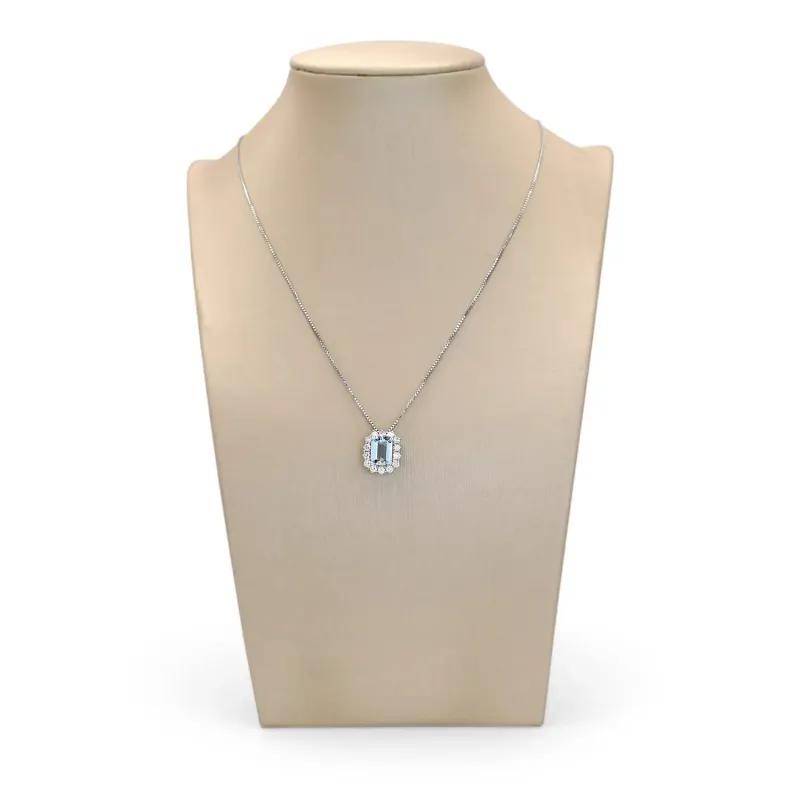 Halskette aus 18 Karat Weißgold mit Aquamarin und Diamanten drumherum