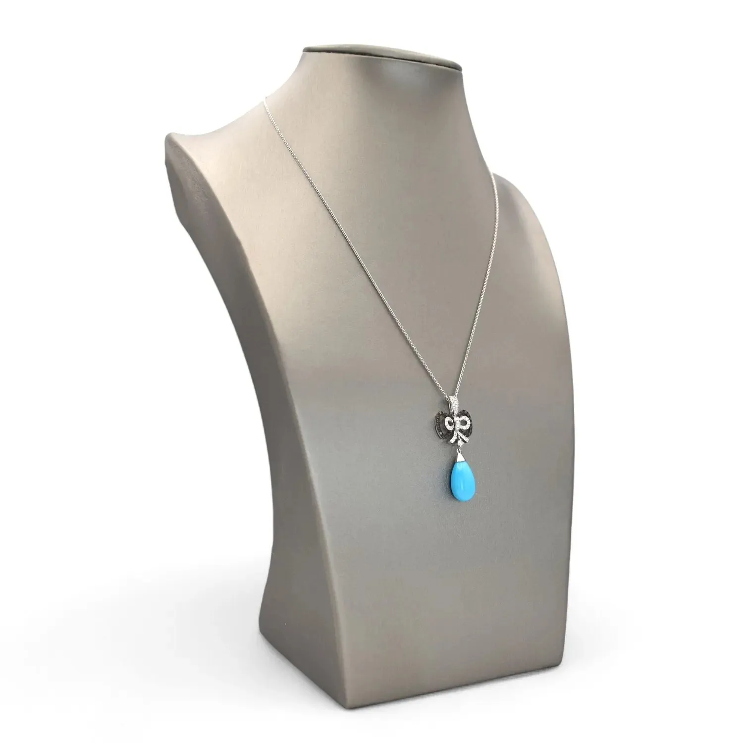 Anhänger aus 18 Karat Weißgold, weiße und schwarze Diamanten mit natürlichem Türkis