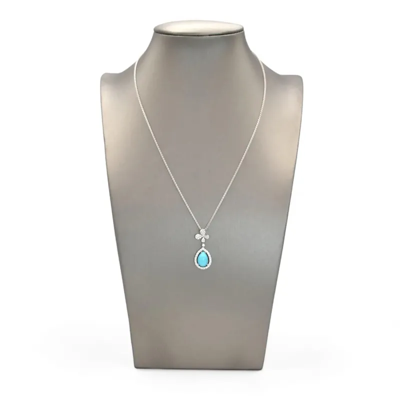 Stella Maris Halskette – 18 Karat Weißgold, Diamanten und natürlicher Türkis