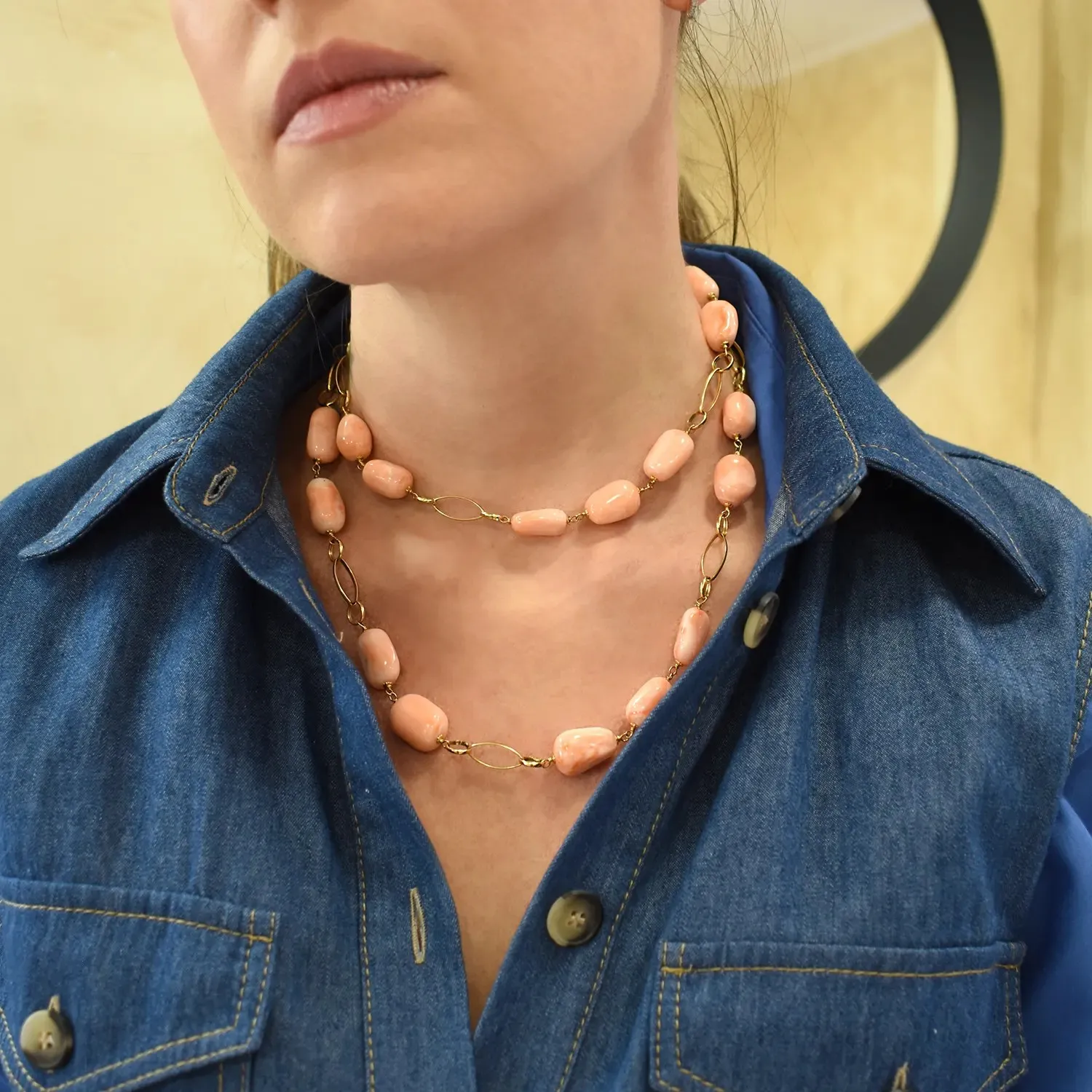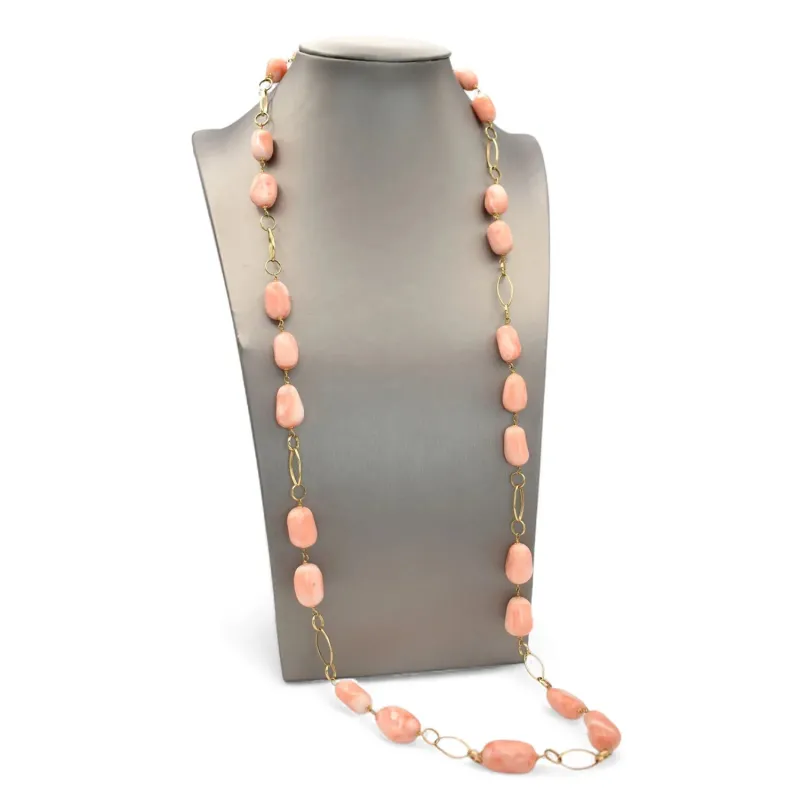 Lange Halskette aus 18 Karat Gelbgold mit orangefarbener Koralle