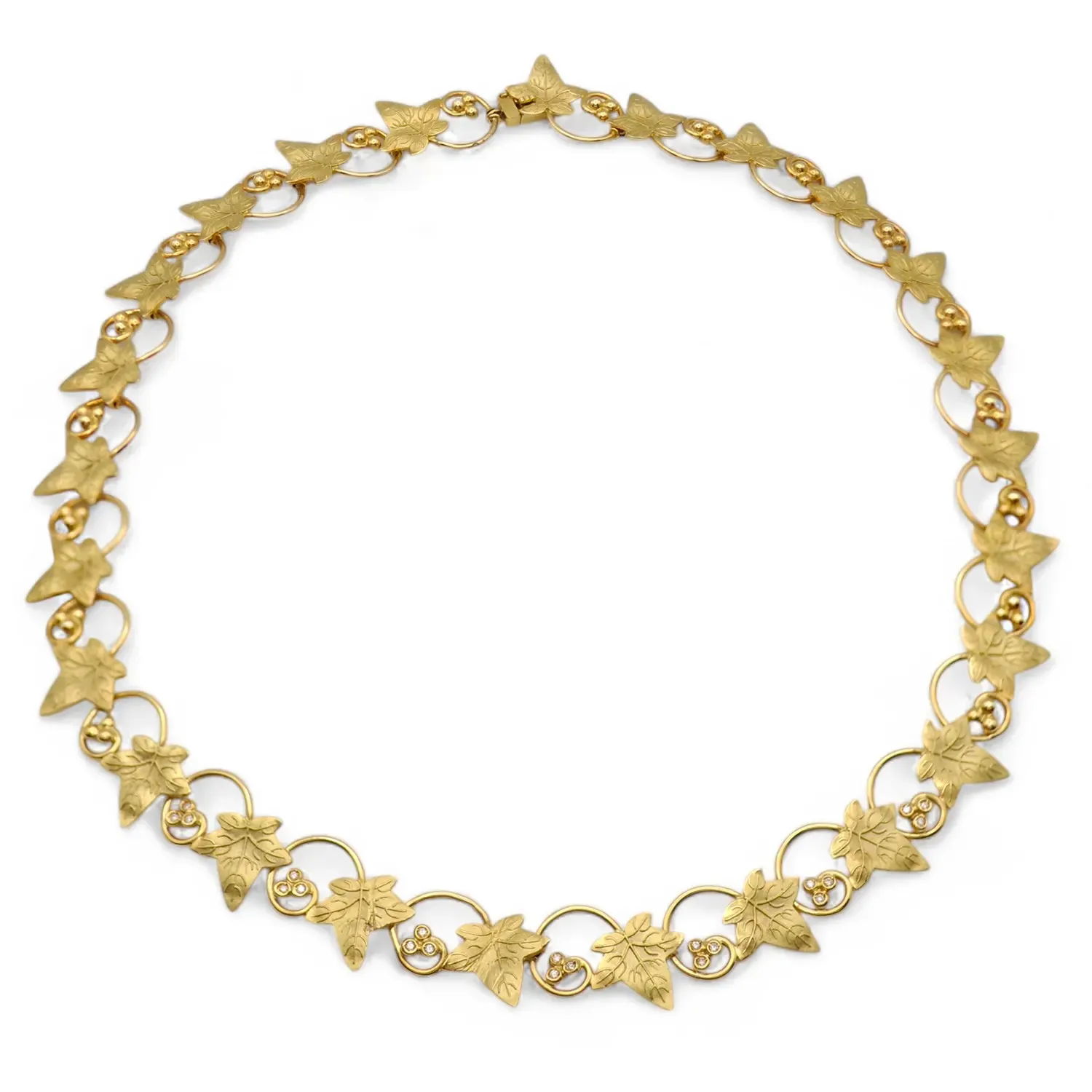 Gelbgold-Halskette mit Efeu-Design und Diamanten
