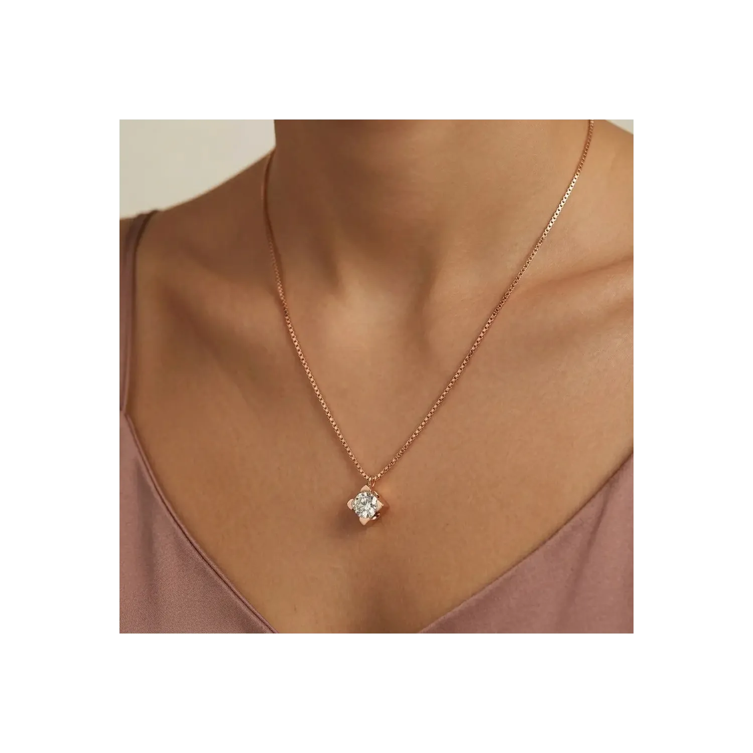 Eleganz trifft auf höchsten Luxus in dieser Halskette aus 18-karätigem Roségold. Der wahre Star ist der außergewöhnliche 0,63 ct Brillant, ein bedeutender Stein, der das Licht einfängt und in tausend lebendigen Reflexionen erstrahlen lässt. Der Diamant ist in einer raffinierten Vier-Krappen-Fassung gefasst, die speziell dafür entworfen wurde, den Stein optimal zur Geltung zu bringen und seine Brillanz aus jedem Winkel zu maximieren.