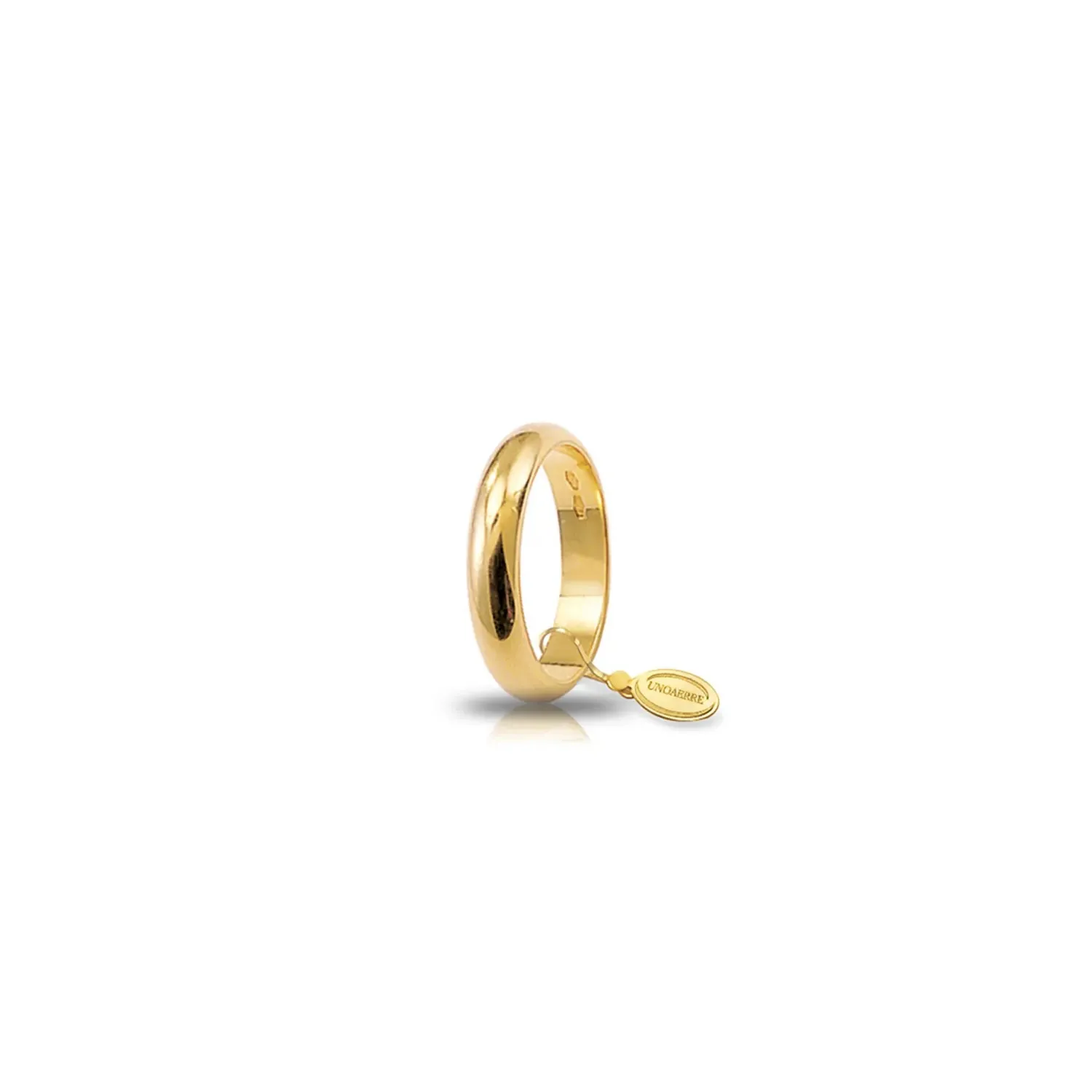 Eheringe Breiter Ehering aus Gelbgold 5gr. UnoAerre 050AFN0060000 Klassischer Ehering „Larga“ glatt gewölbt in 750 Gelbgold. 5,00 Gr. – 4,50 Mm. Der Ring ist das perfekte Symbol der wichtigsten und wertvollsten Verbindung. View
