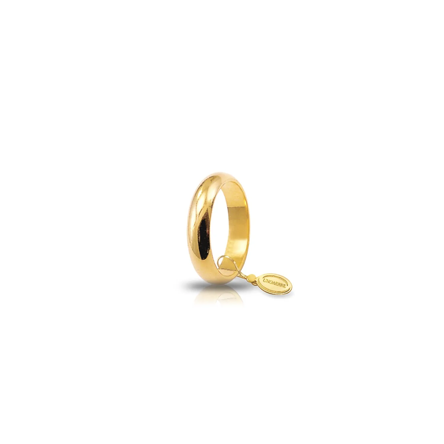 Eheringe Breiter Ehering aus Gelbgold 4gr. UnoAerre 040AFN0060000 Klassischer, glatt geschwungener Ehering „Larga“ aus 750er Gold. 4,00 g – 4,30 mm. Ein Ring von raffinierter Eleganz, das perfekte Symbol einer kostbaren Verbindung. View