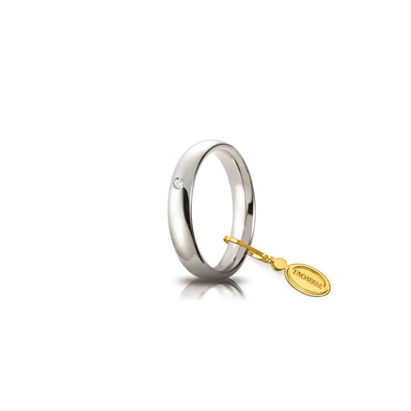 Eheringe Bequemer Ehering mm. 4 in satiniertem Weißgold mit Brillant UnoAerre 040AFC0010110 Trauring "Comoda" in 750er Weißgold mit Satin-Finish und Brillant ct. 0,03. Gr von 5,85 bis 6,85 – Mm 4,00 Ein einzigartiger und kostbarer Ring, ein perfekter Kreis, der niemals endet. View
