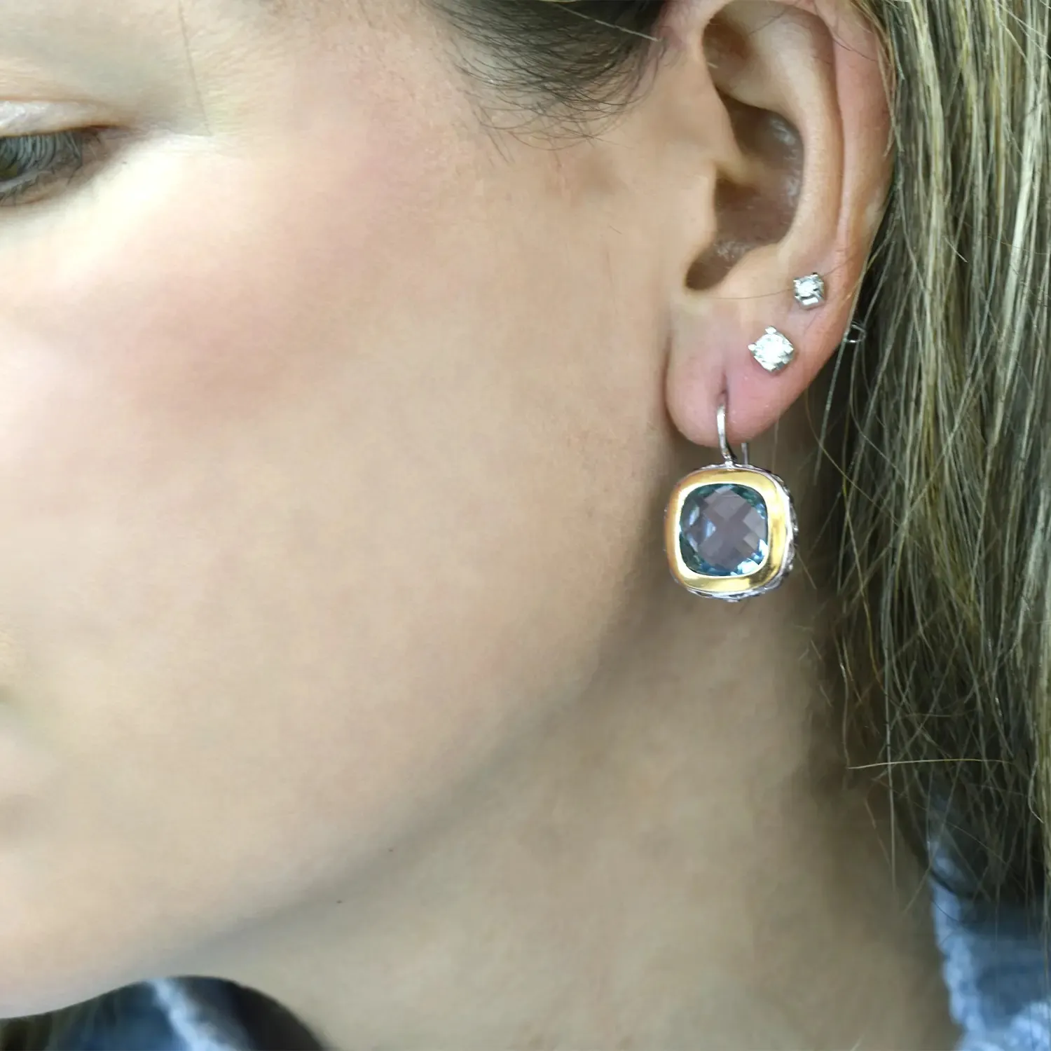 Ohrringe aus 18 Karat Weiß- und Gelbgold. mit blauem Topas