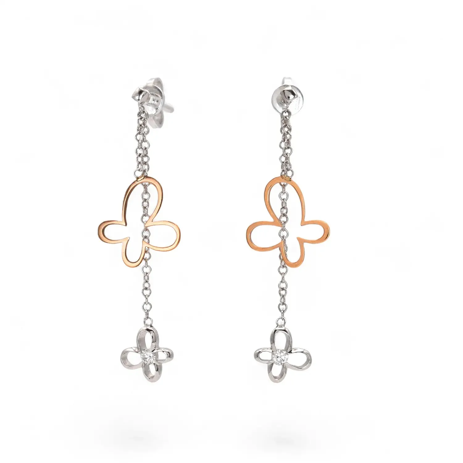 Schmetterlingsohrringe in Weiß- und Roségold mit 0,10 ct Diamanten