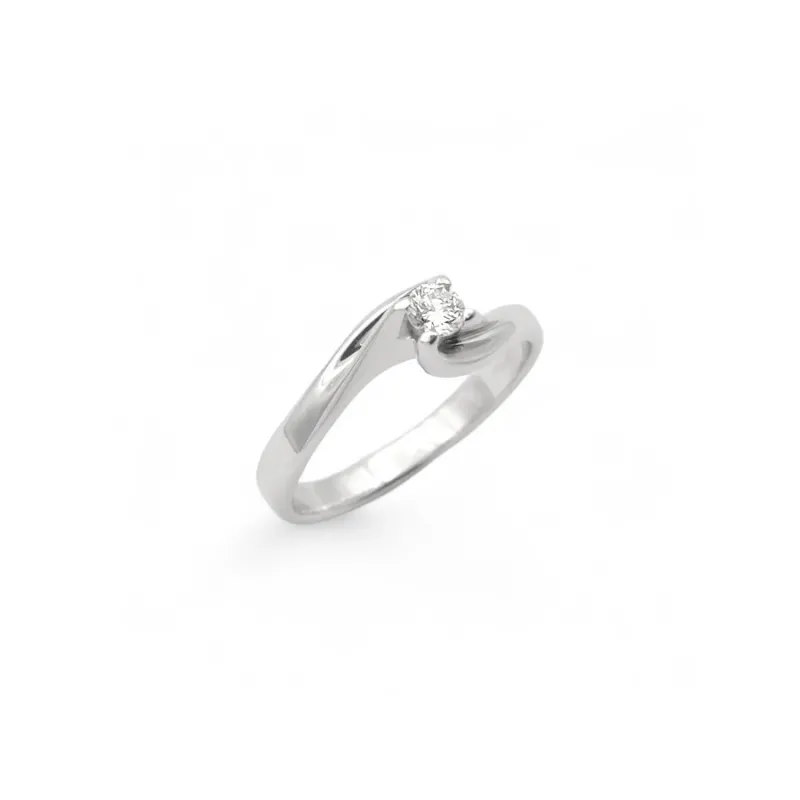 Solitärring aus Weißgold mit vier gedrehten Krappen 0,18 ct