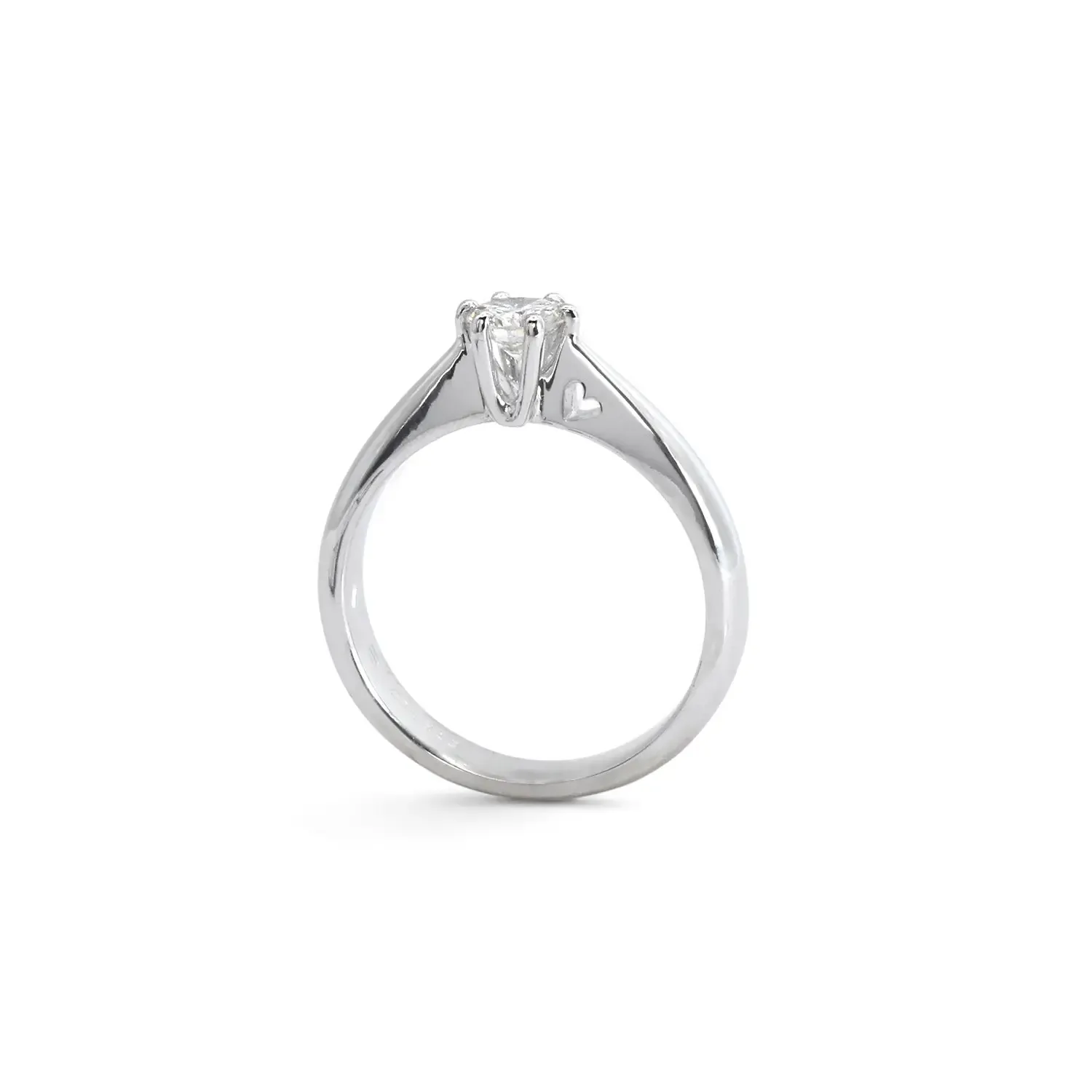 Solitärring aus Weißgold mit sechs Krappen und herzförmiger Fassung