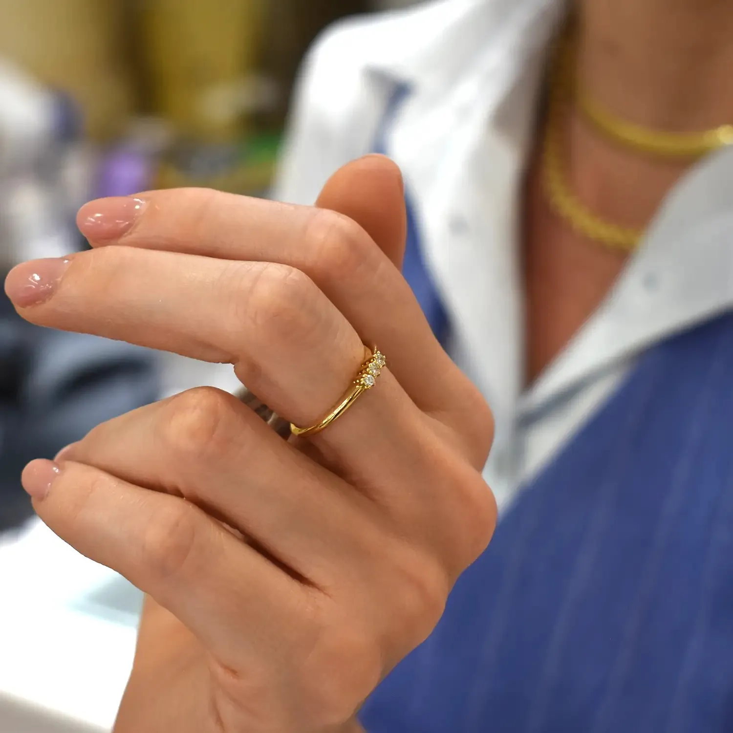 Gelbgoldener Ring Trilogie-Modell mit Drahtfassungen