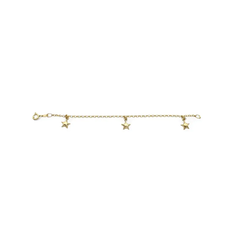 18kt Yellow Gold Children's Bracelet with Three Stars | 14 cm
