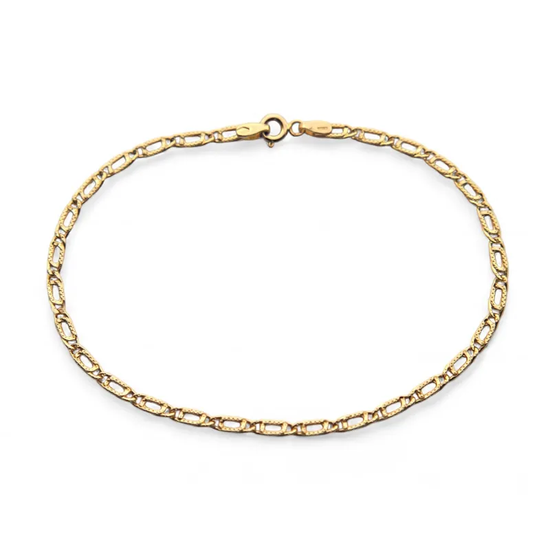 Bracelets Yellow gold bracelet with alternating links br0005 €154.00 Junior bracelet in 18kt yellow gold with alternating link Bracelet length 14 cm. 18kt yellow gold. gr. 1.1 Add to cart