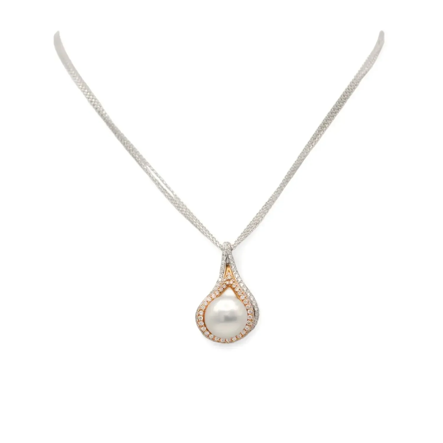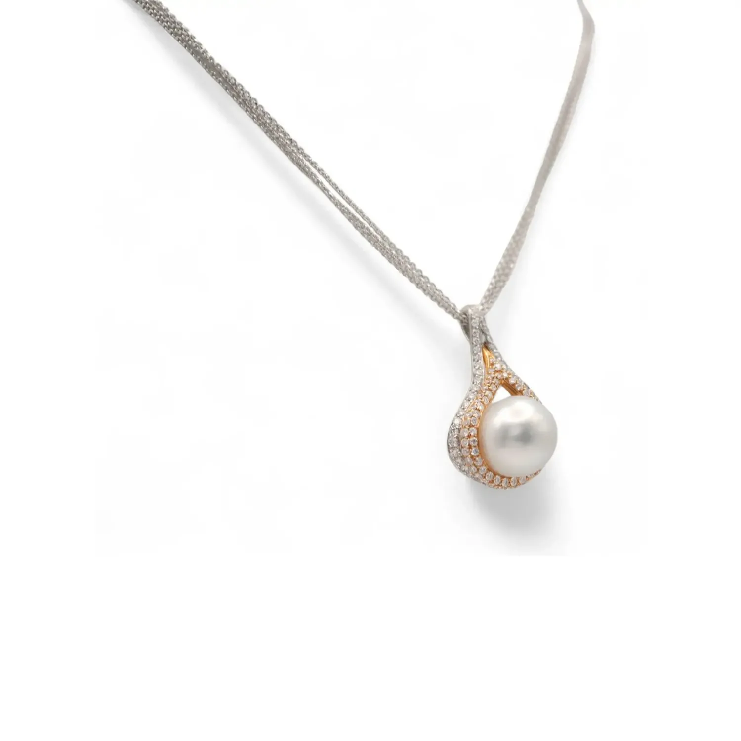 18kt white and rose gold necklace with triple rolo chain and pendant with 12.4 mm Australian pearl and brilliant-cut diamonds