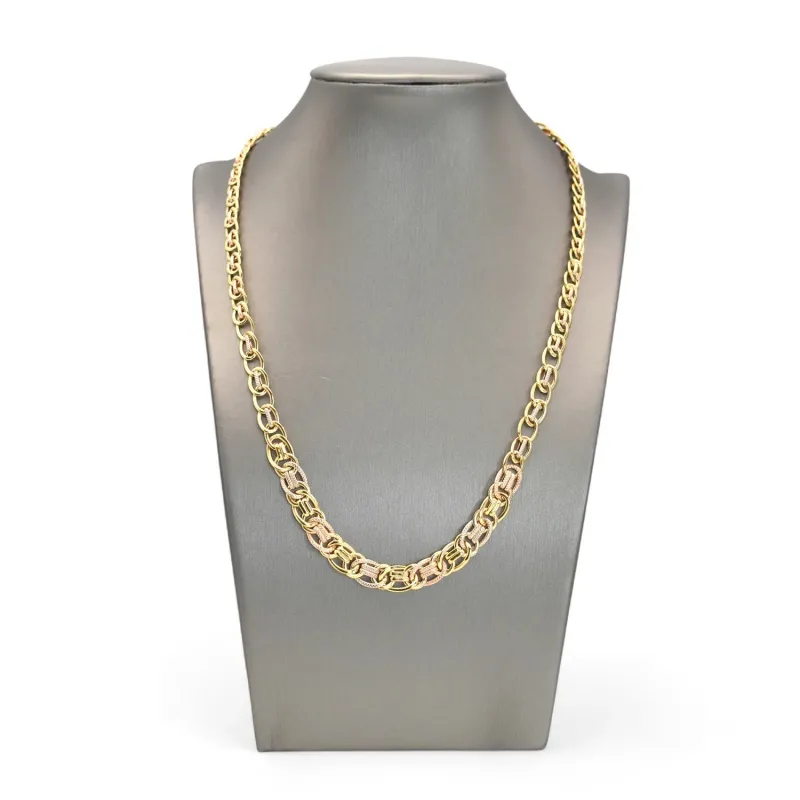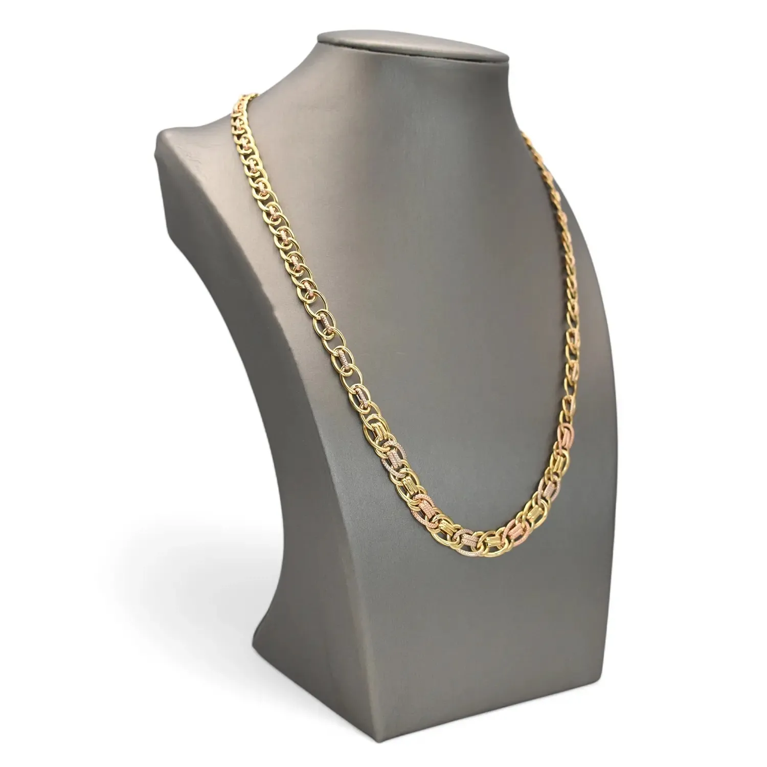 18kt Yellow Gold Necklace with Tricolor Knurled Elements