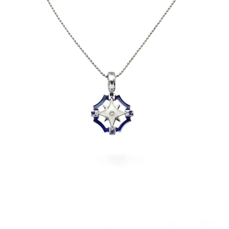 Unisex "Compass Rose" Choker in 18kt White Gold with Enamel and Diamond