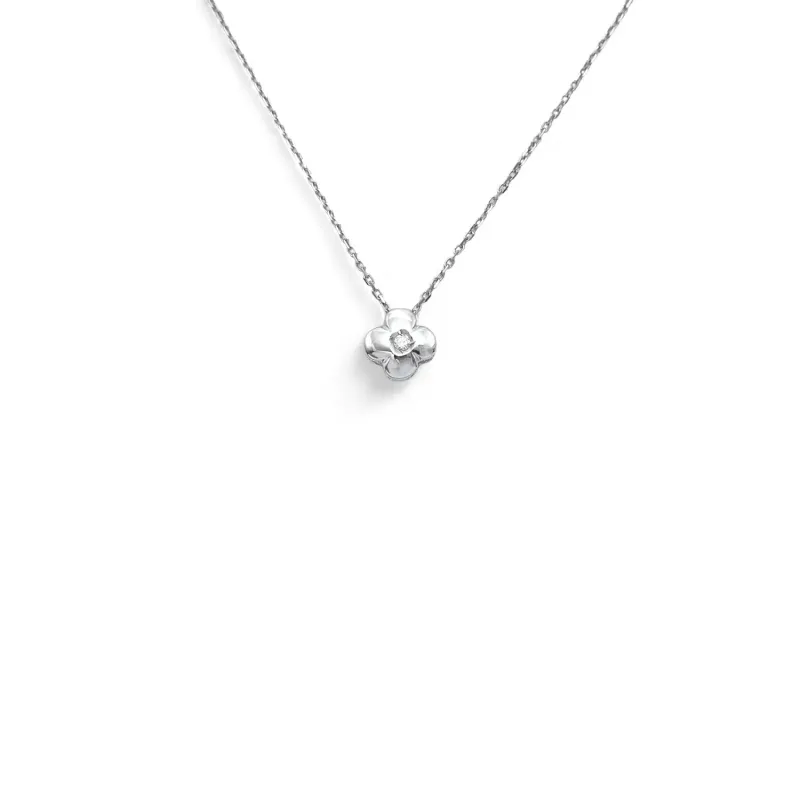 "Lucky Bloom" Necklace in 18kt White Gold with Four-Leaf Clover and Diamond