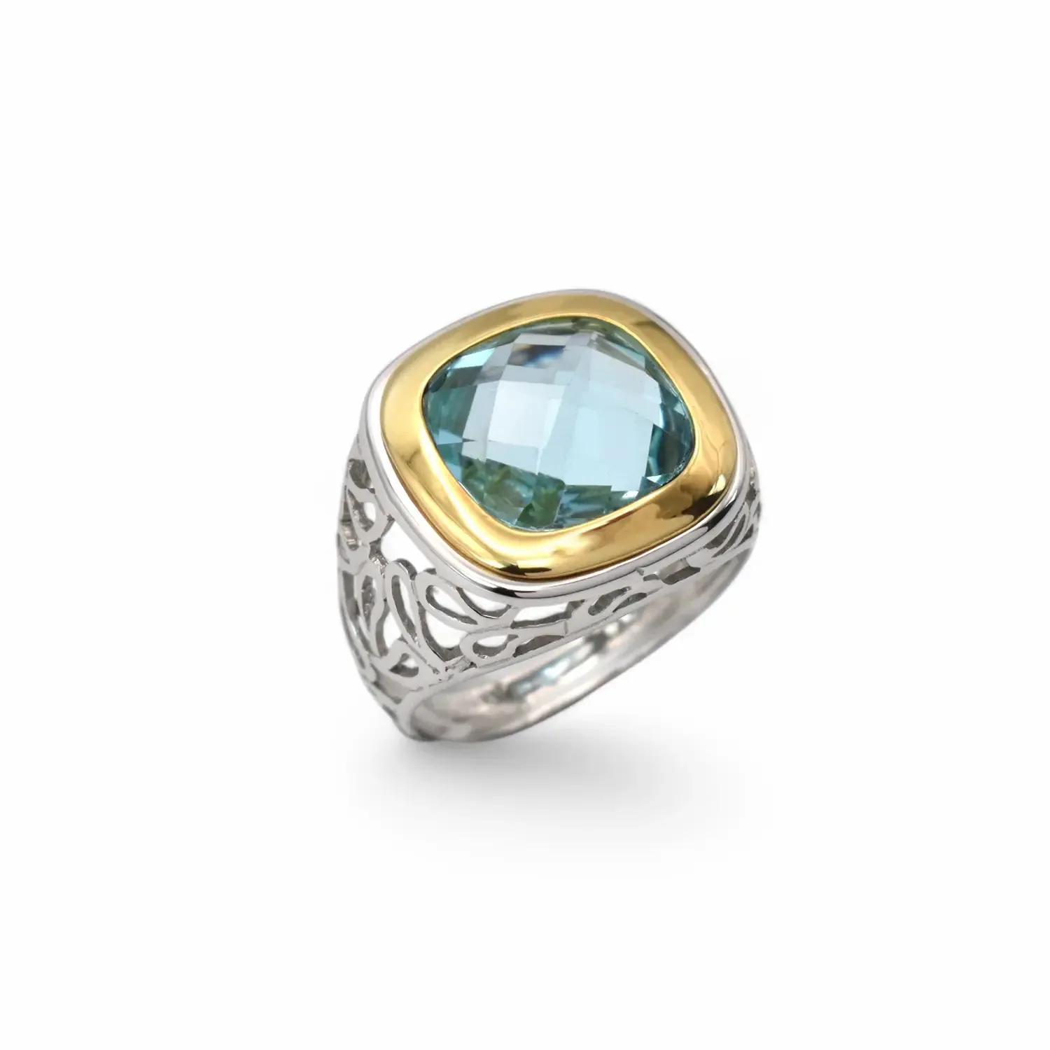Rings White gold ring with blue topaz and amethyst an0013 €970.00 18kt white gold ring with blue topaz and amethyst Briolette cut blue topaz Briolette cut amethyst Add to cart 12 13 14 15 16 17 18 19 20