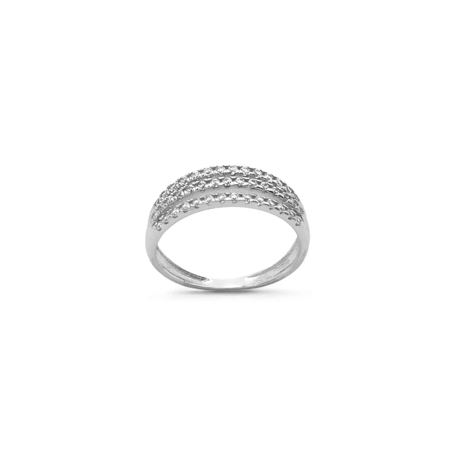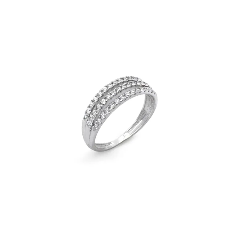 18kt White Gold Band Ring with Three Rows of Zirconia