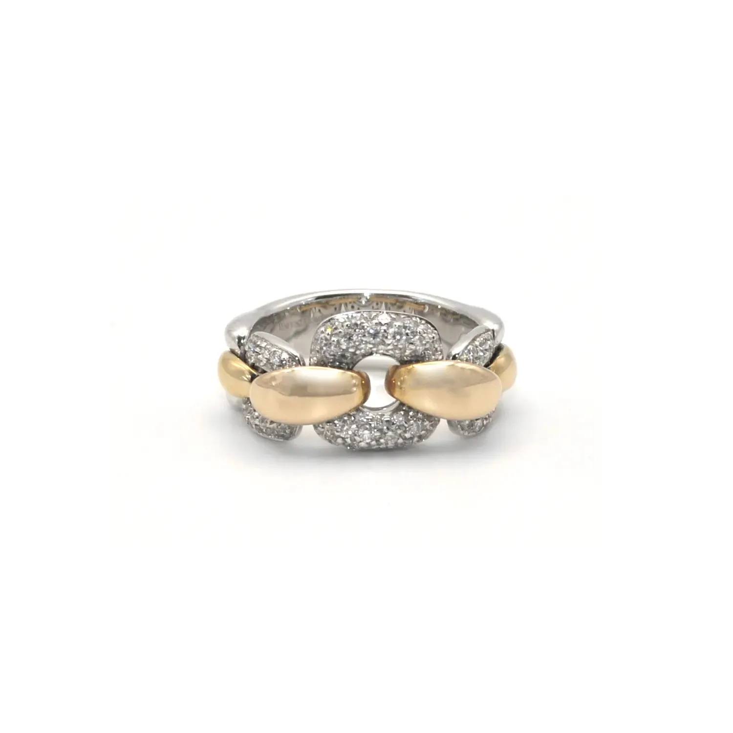 White and rose gold pavé diamond chain ring