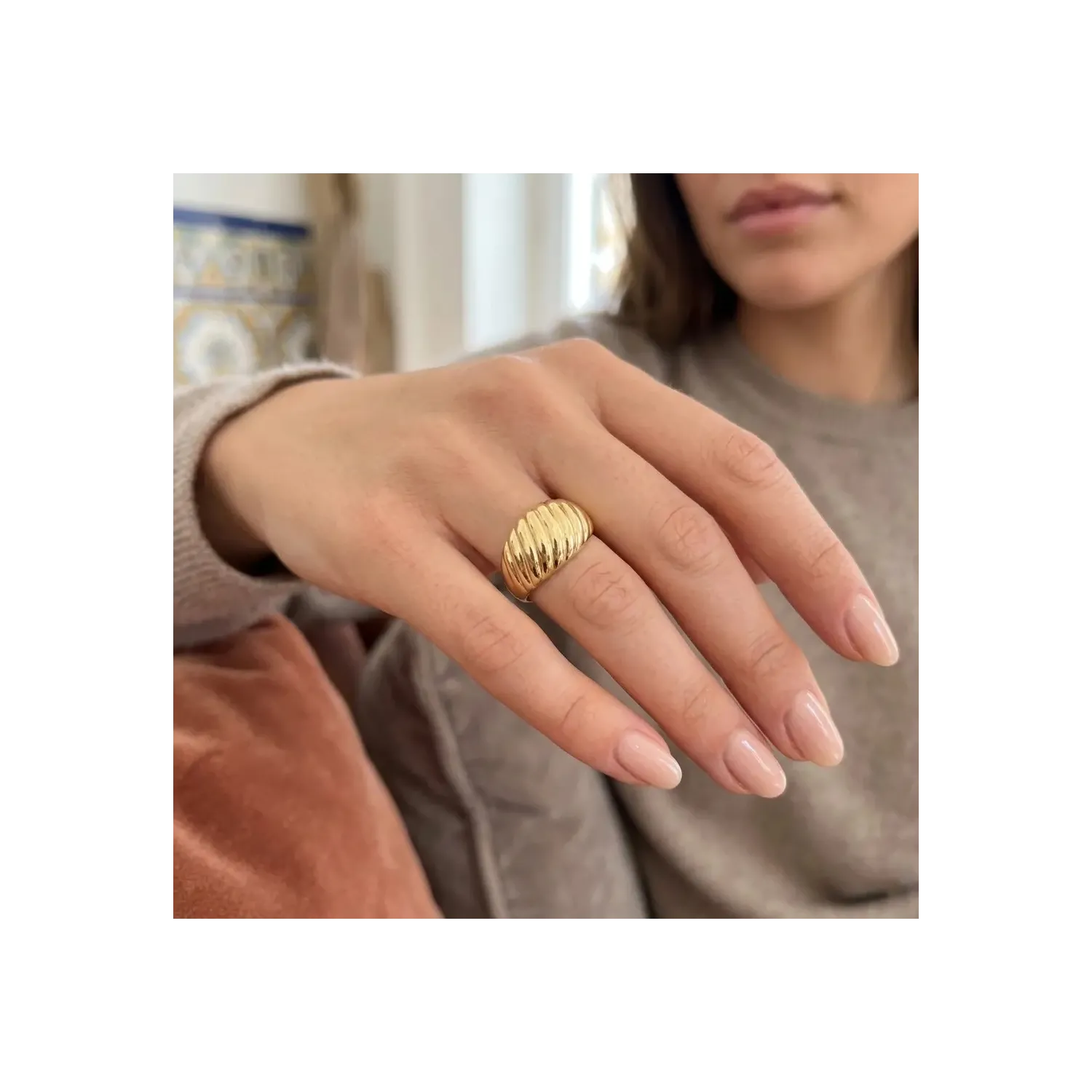 Weighing 4.70 grams, the rounded structure ensures a significant presence on the hand while maintaining an extremely comfortable fit. The fully mirror-polished finish enhances the precision of the waves, the fruit of the excellence of Italian goldsmith craftsmanship. A piece with a contemporary feel, ideal for those seeking a classic revisited with a sculptural, essential touch.