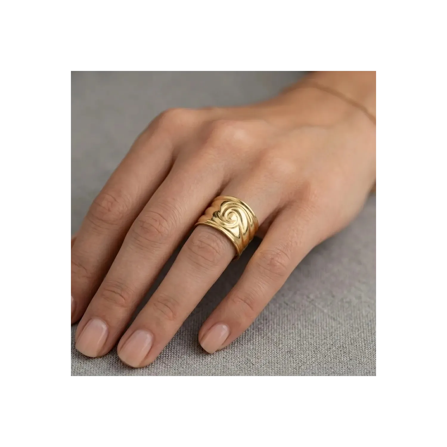 Fully mirror-polished, this ring, weighing 3.40 grams, elegantly captures the light, enhancing the purity of its sinuous lines. Italian goldsmith craftsmanship transforms a simple design into a statement piece, perfect worn alone as an everyday detail or paired with other rings for a more refined and personal look.