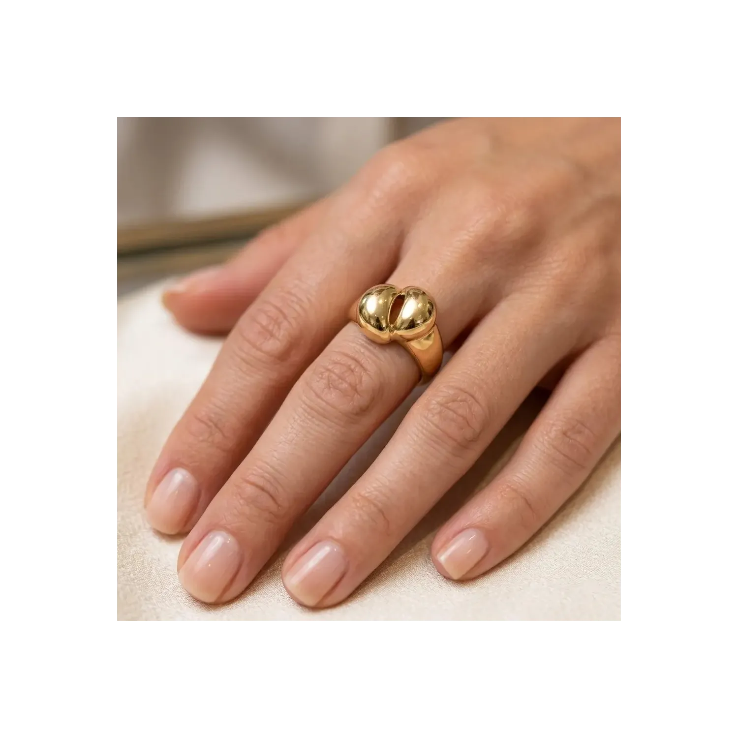 Weighing 5.40 grams, the band features a soft curvature that ensures a significant presence on the hand without sacrificing comfort. The fully mirror-polished finish enhances the surface's rhythmic volumes, creating warm, continuous reflections. A creation of high-quality Italian craftsmanship, perfect for those seeking a piece with a classic feel yet a strong contemporary impact.