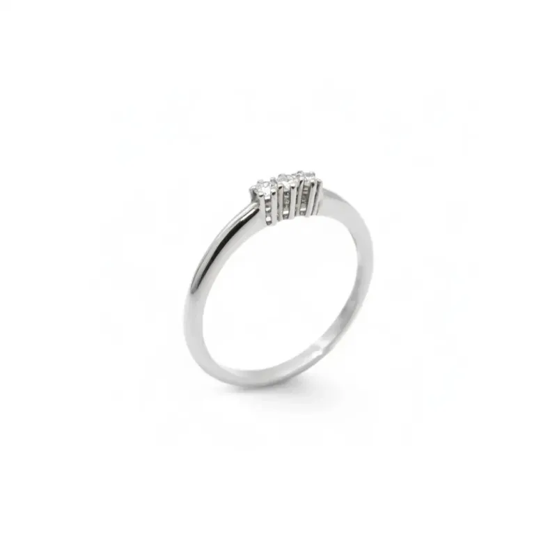 This delicate 18kt white gold trilogy ring embodies the essence of discreet elegance. Three brilliant-cut diamonds, totaling 0.09 ct, are masterfully set in a linear setting that enhances their purity, symbolizing the continuity of a unique bond over time.