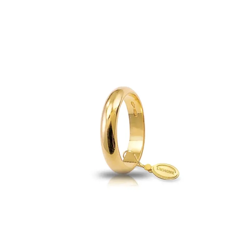 Wedding rings Wide wedding ring in yellow gold 4gr. UnoAerre 040AFN0060000 Classic "Larga" smooth curved wedding ring in 750 gold. Gr 4.00 - Mm 4.30 A ring of refined elegance, the perfect symbol of a precious union. View