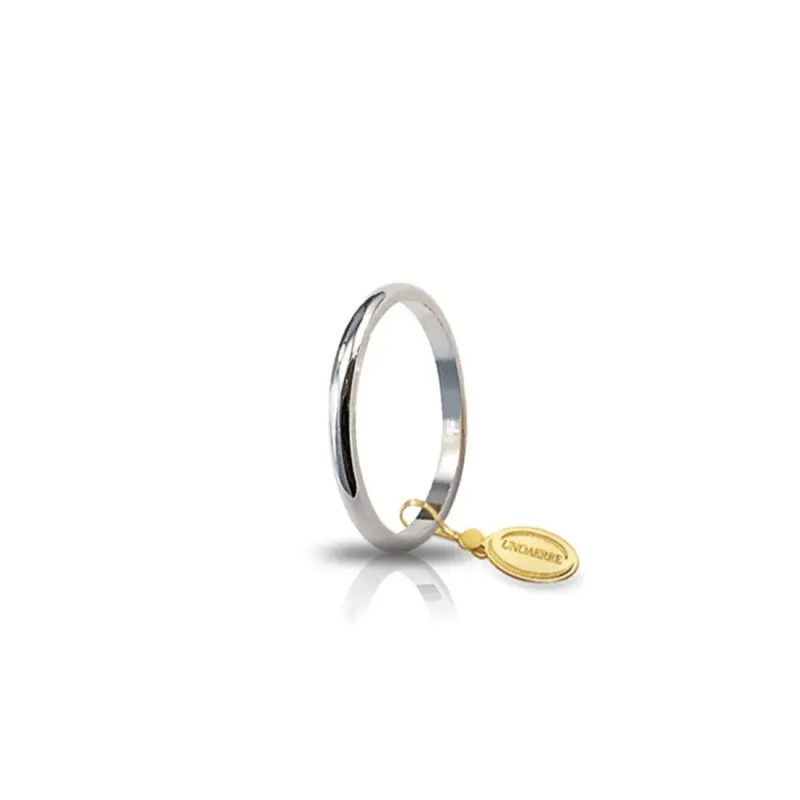Wedding rings 3.0gr white gold French wedding ring. UnoAerre 030AFN0040000 Classic "Francesina" smooth curved ring in 750 gold. Gr 3.00 - Mm 2.20 The elegantly thin and refined shape makes this ring the precious and discreet symbol of a strong and lasting love. View