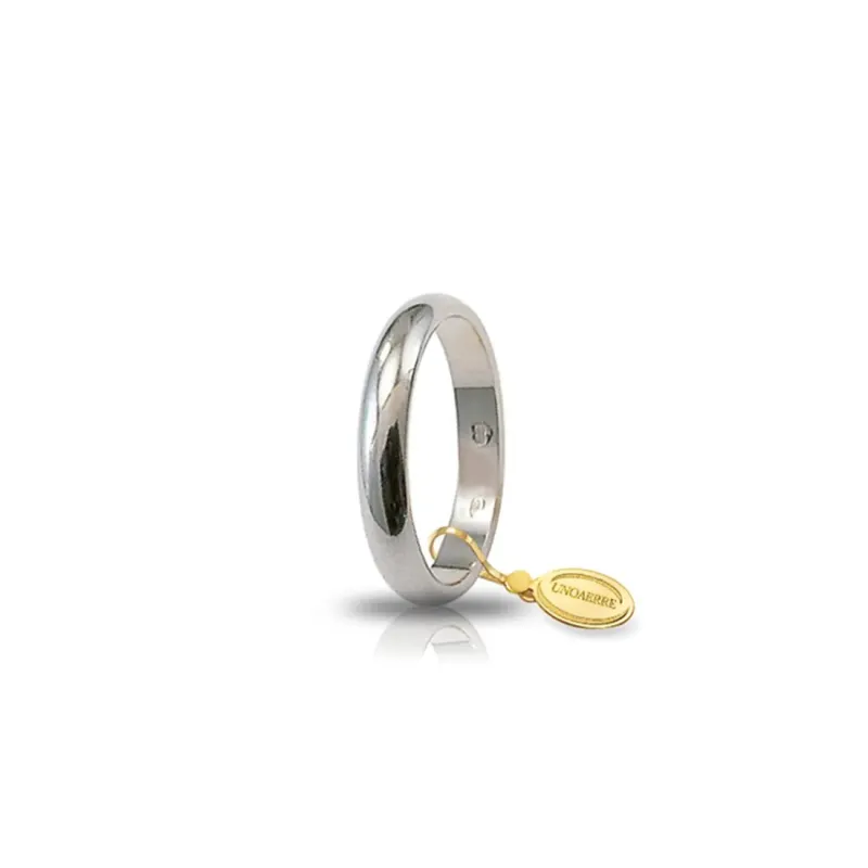 Anillos de boda Anillo de bodas francés en oro blanco de 4,0gr. UnoAerre 040AFN0040000 Clásico anillo curvo liso “Francesina” en oro 750. Gr 4.00 - Mm 2.85 La forma elegantemente fina y refinada hace de este anillo el símbolo precioso y discreto de un amor fuerte y duradero. View
