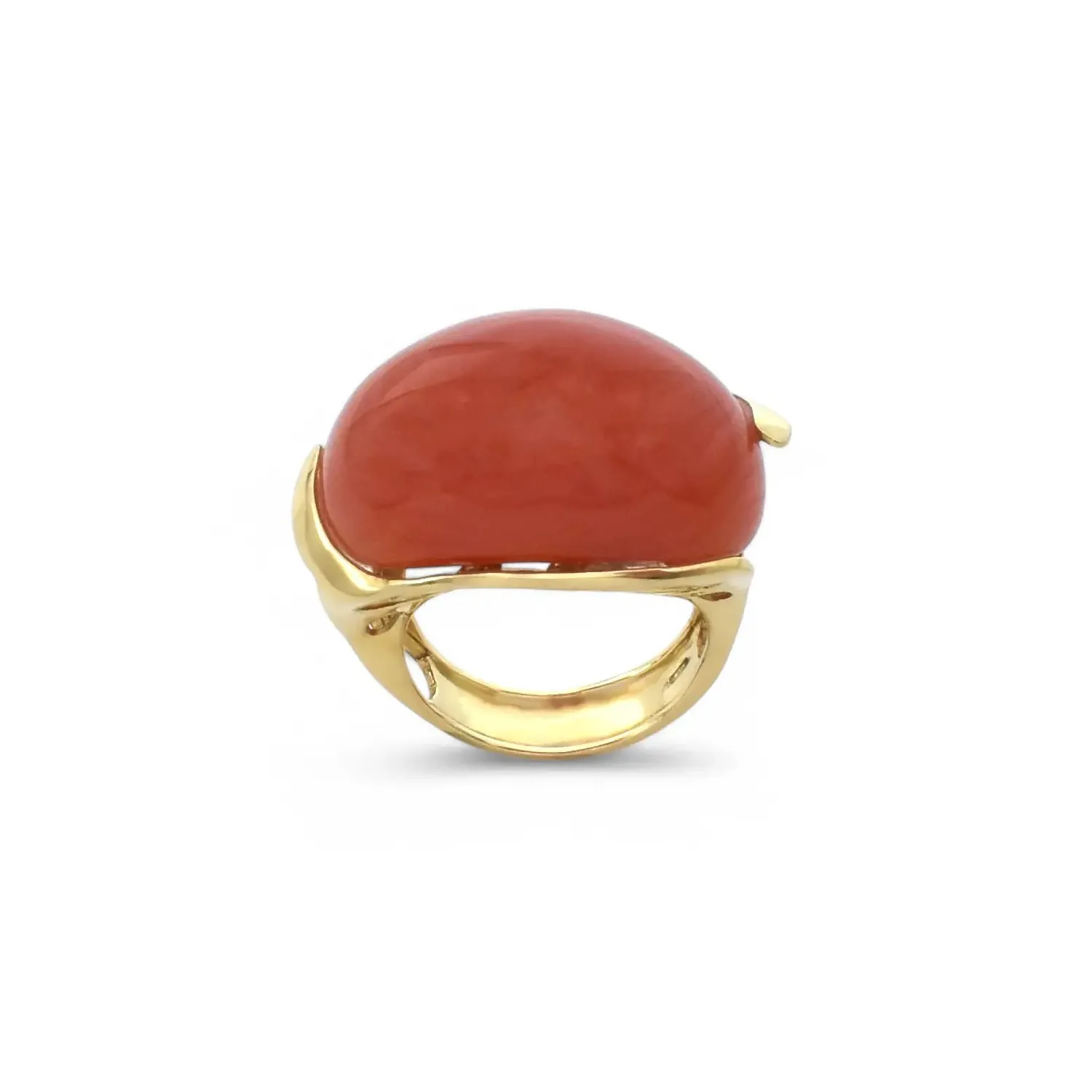 Anillo de oro amarillo de 18kt. con cuarzo citrino tallado en fantasía