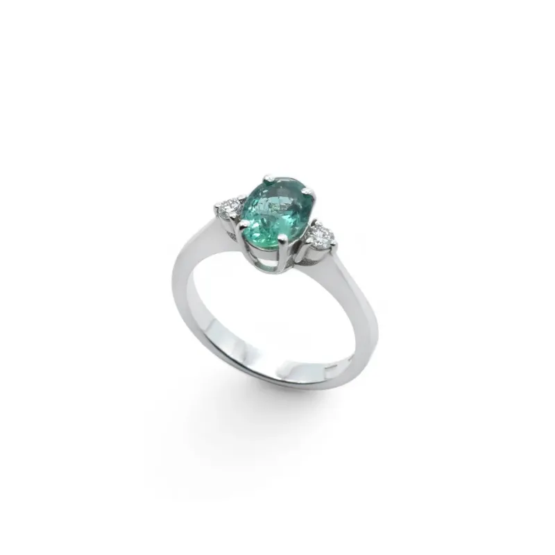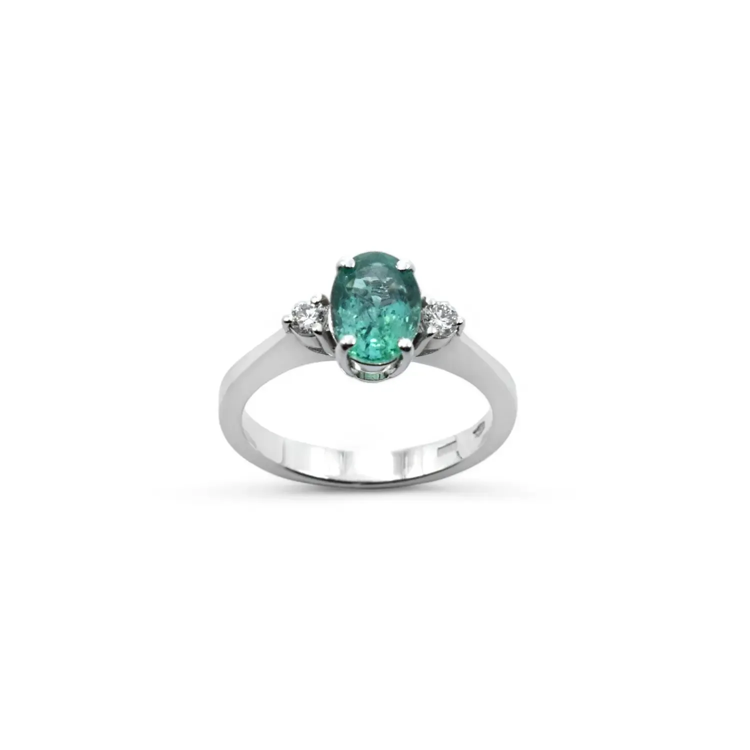 StellaMaris - Anillo de oro blanco con esmeralda ovalada y diamantes.