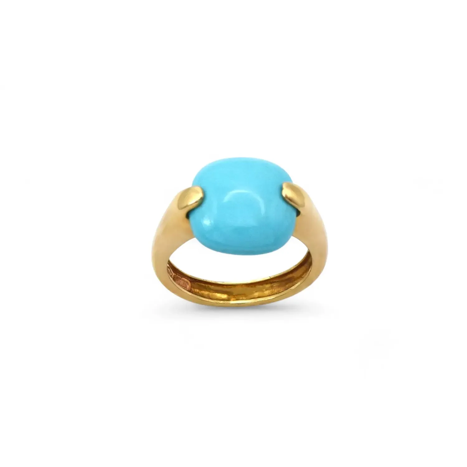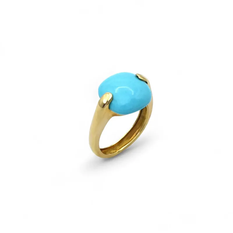Anillo Stella Maris - Turquesa natural talla cojín y oro amarillo de 18 kt