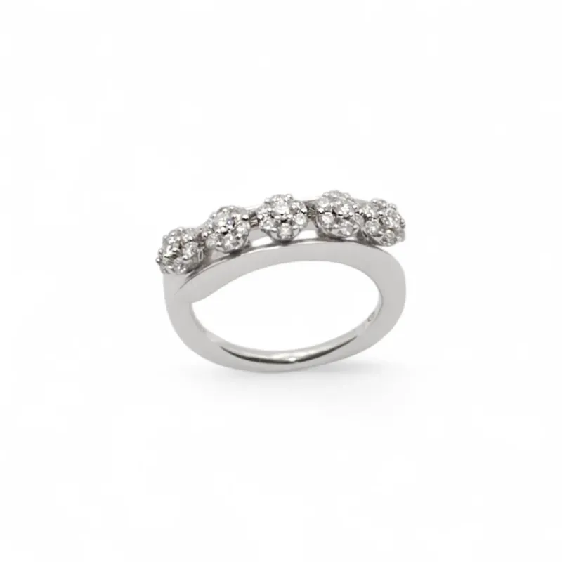 Cinco parches de diamantes en este anillo de oro blanco de 18 quilates. con cuerpo contrario