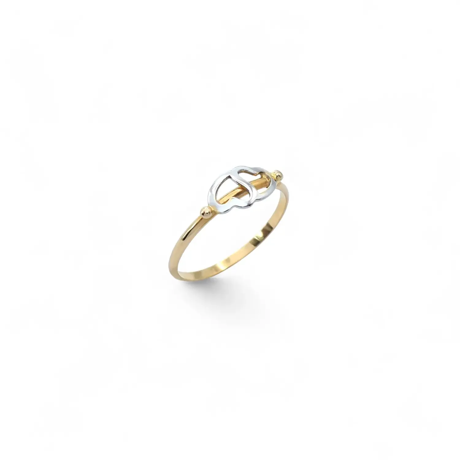 Este anillo de doble corazón en oro bicolor de 18 quilates es una pieza romántica y moderna que celebra la unión. Presenta dos corazones estilizados, uno al lado del otro y entrelazados, uno en oro amarillo pulido y el otro en oro blanco, creando un elegante contraste de color. Su banda fina y su peso ligero de 1,3 g lo hacen cómodo e ideal para usar a diario. Es un símbolo refinado de afecto y una pieza versátil que combina fácilmente con otras joyas.