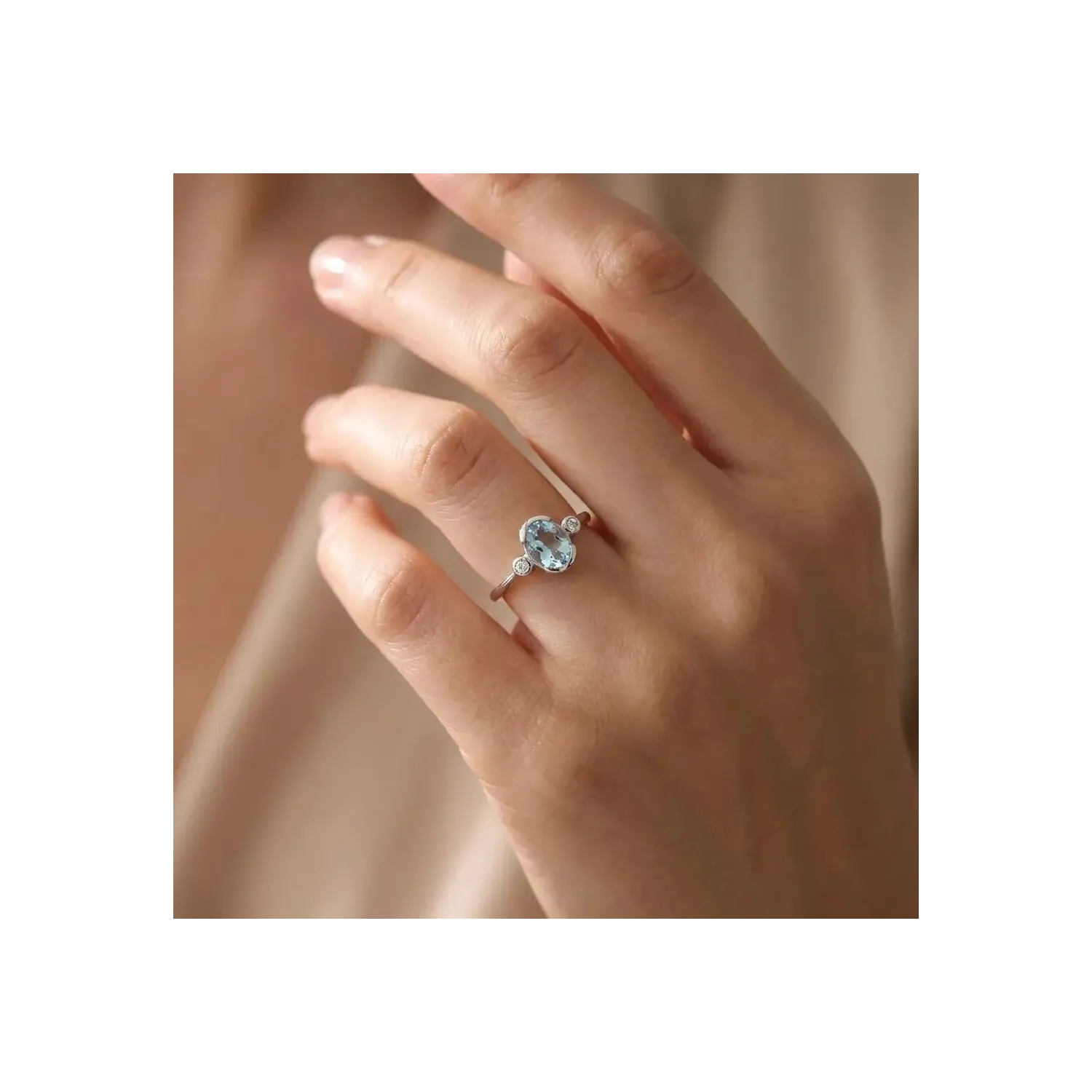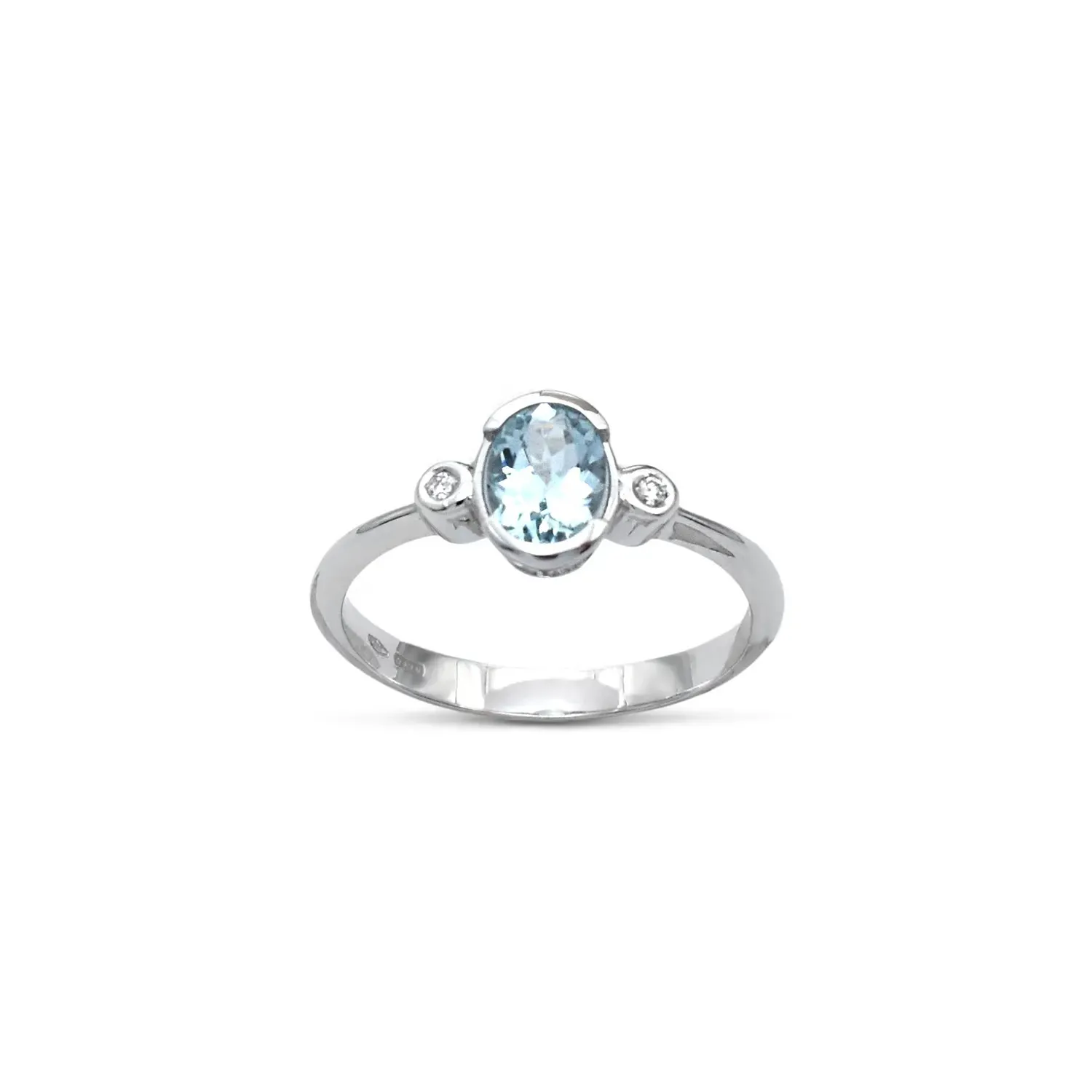 Anillo de oro blanco de 18 kt con aguamarina ovalada y diamantes