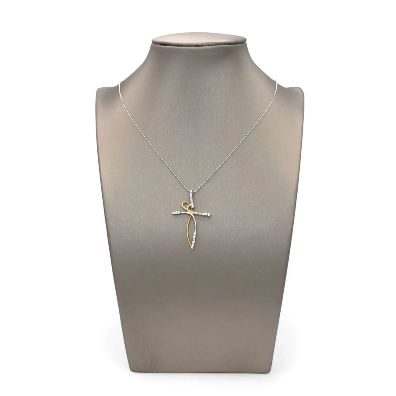 Colgante de cruz entrelazada bicolor de 18 quilates con circonitas (3,5 cm)