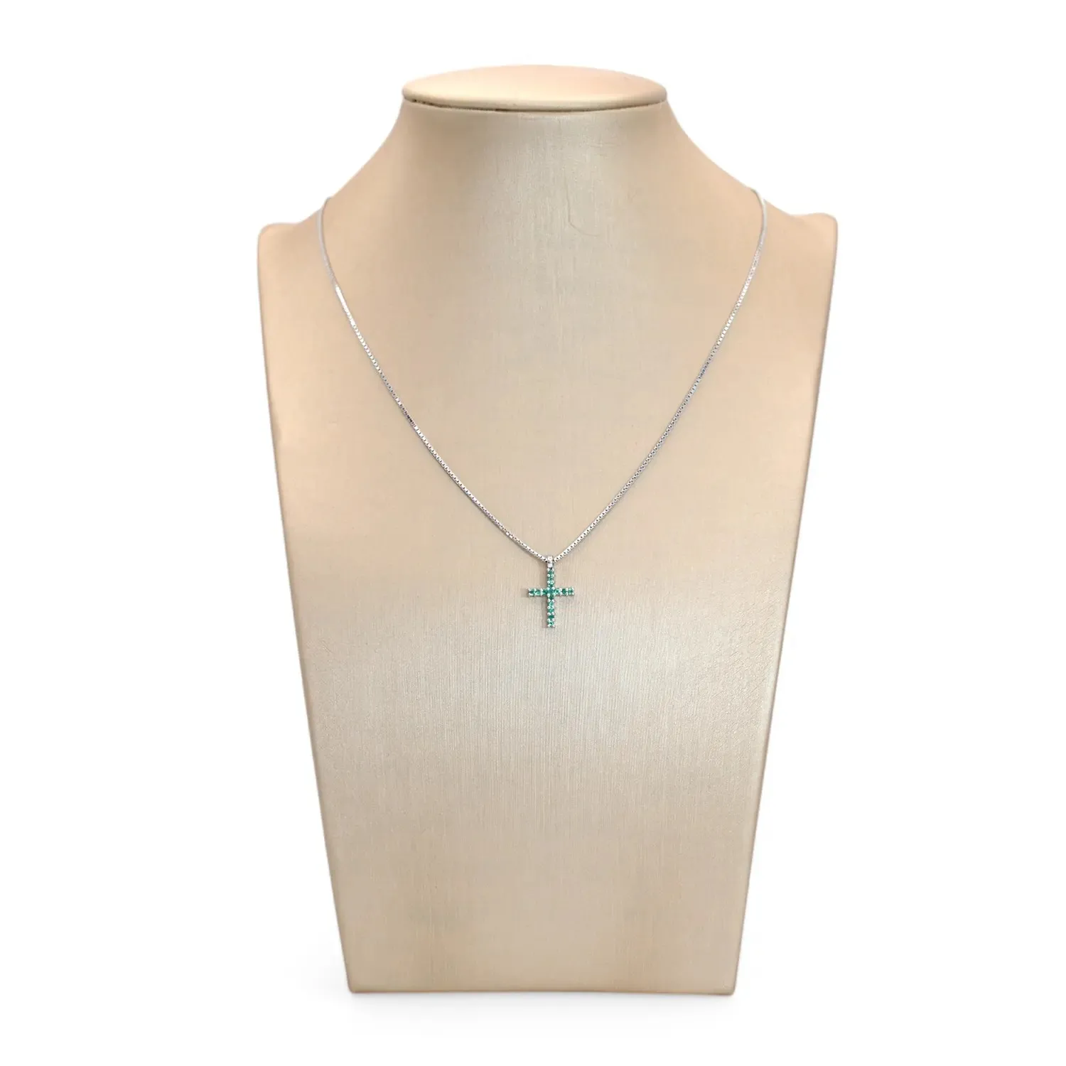 Colgante de cruz de oro blanco de 18 kt con esmeraldas