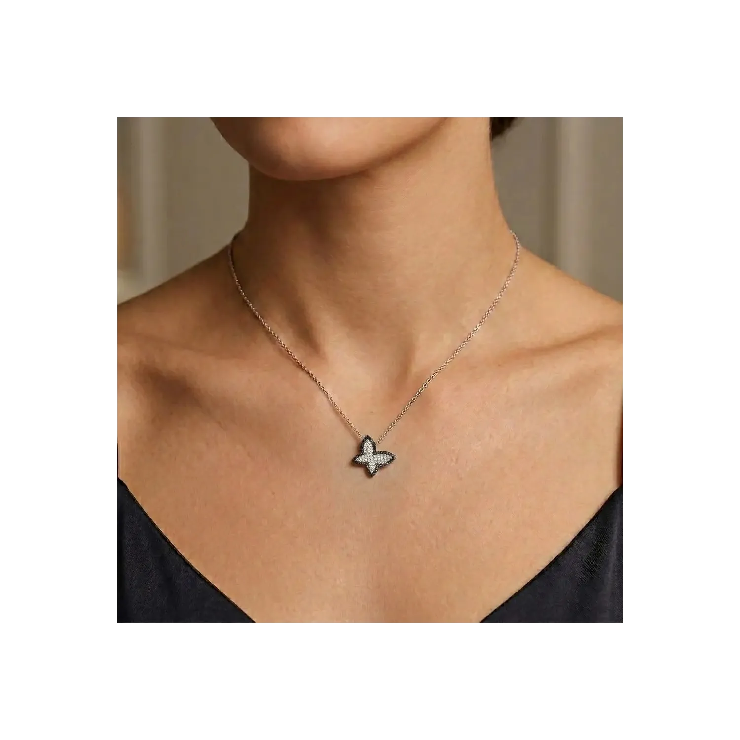 Collar con colgante "Mariposa" de oro blanco de 18 kt con diamantes blancos y negros