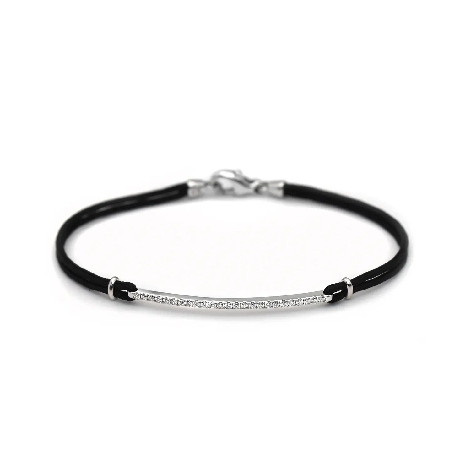 Pulsera unisex en oro blanco de 18 kt y algodón encerado negro con diamantes de 0,30 ct.