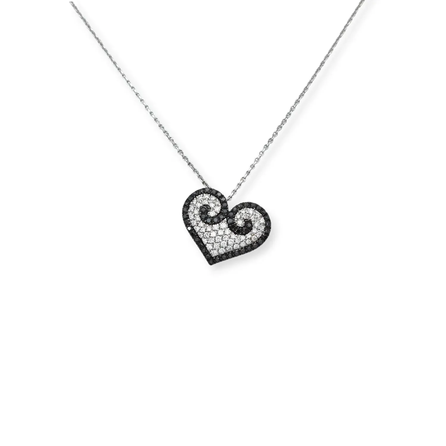 Collar con colgante de corazón en oro blanco de 18 kt con diamantes blancos y negros