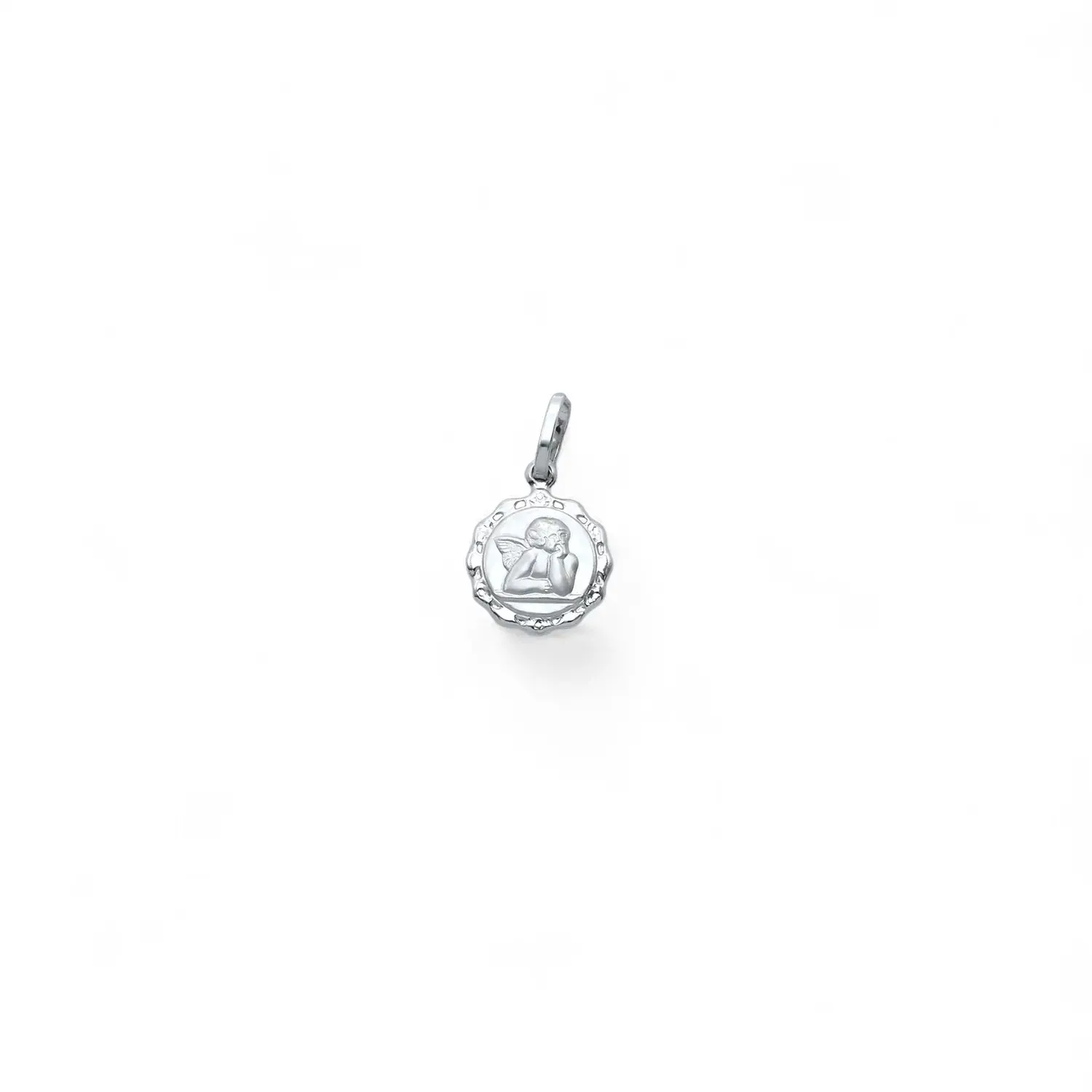 Colgante de ángel redondo perforado en oro blanco de 18 kt | 1,5 cm