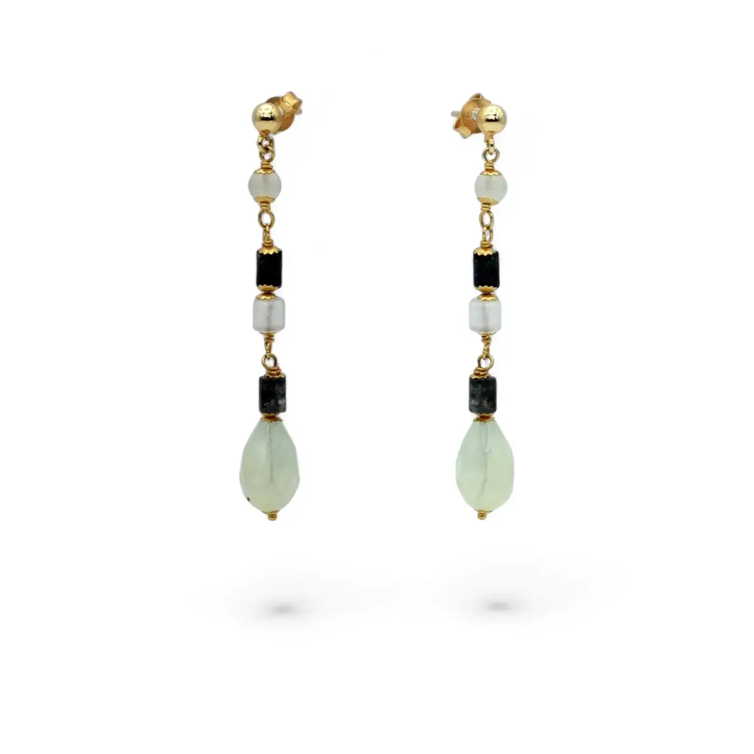 Pendientes colgantes de oro amarillo con aguamarina color leche